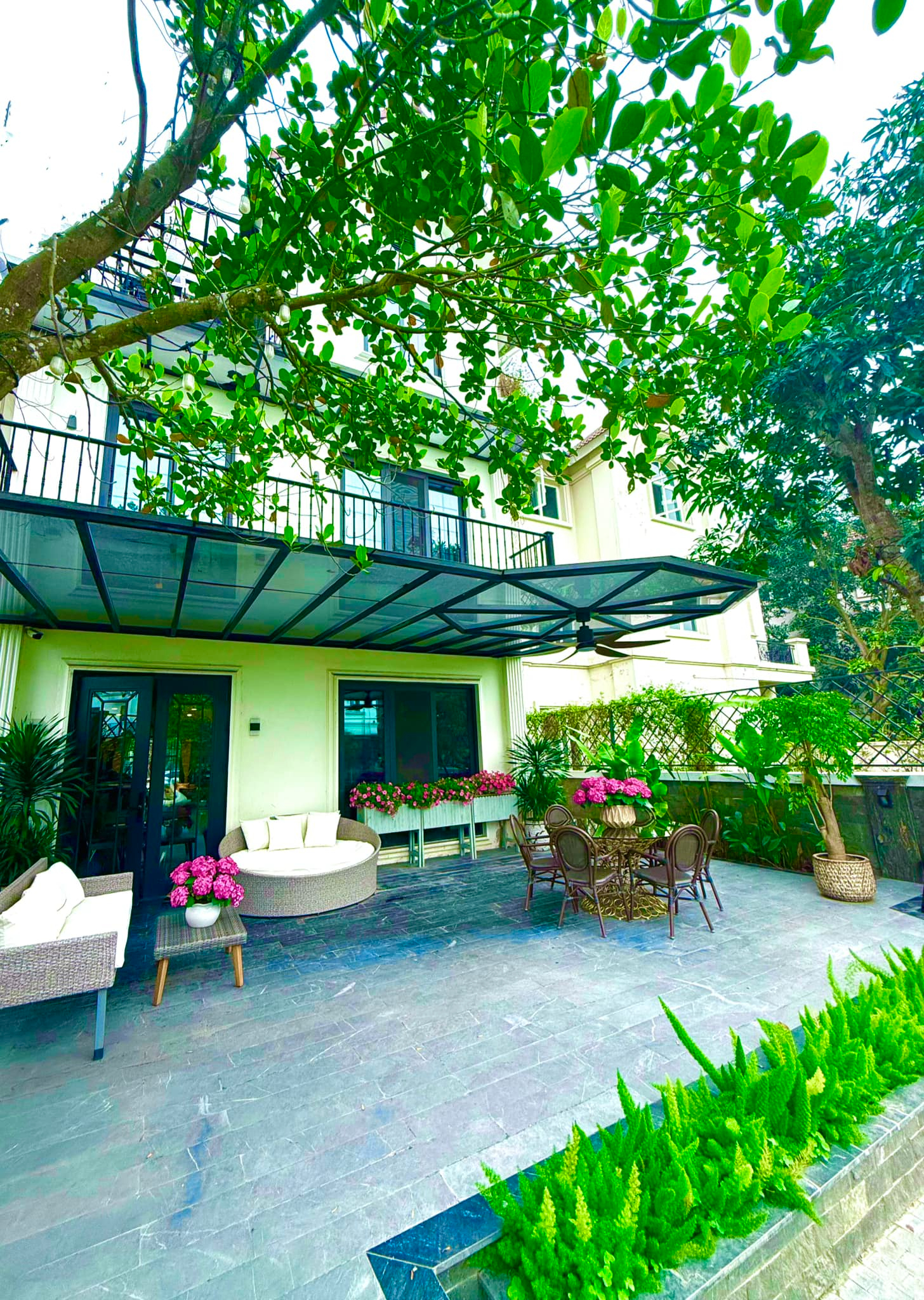 Ngay từ bên ngoài, căn biệt thự đã gây ấn tượng bởi vẻ bề thế, sang trọng và đầy cuốn hút. Bước vào bên trong, không gian sống rộng 450m² mở ra thoáng đãng, được bố trí khoa học để tối ưu ánh sáng và sự kết nối với thiên nhiên. Bao quanh là khu sân vườn rộng 150m², mang lại cảm giác thư thái, tách biệt khỏi nhịp sống đô thị ồn ào. Khu sân vườn trước nhà được thiết kế tỉ mỉ với lối đi lát đá, hồ cá koi sinh động cùng nhiều loại cây xanh và hoa rực rỡ, tạo nên một bức tranh thiên nhiên hài hòa, giàu sức sống. Bên cạnh, một góc vườn sau nhà còn sở hữu tầm nhìn hướng ra sông, mang đến không gian thư giãn lý tưởng.