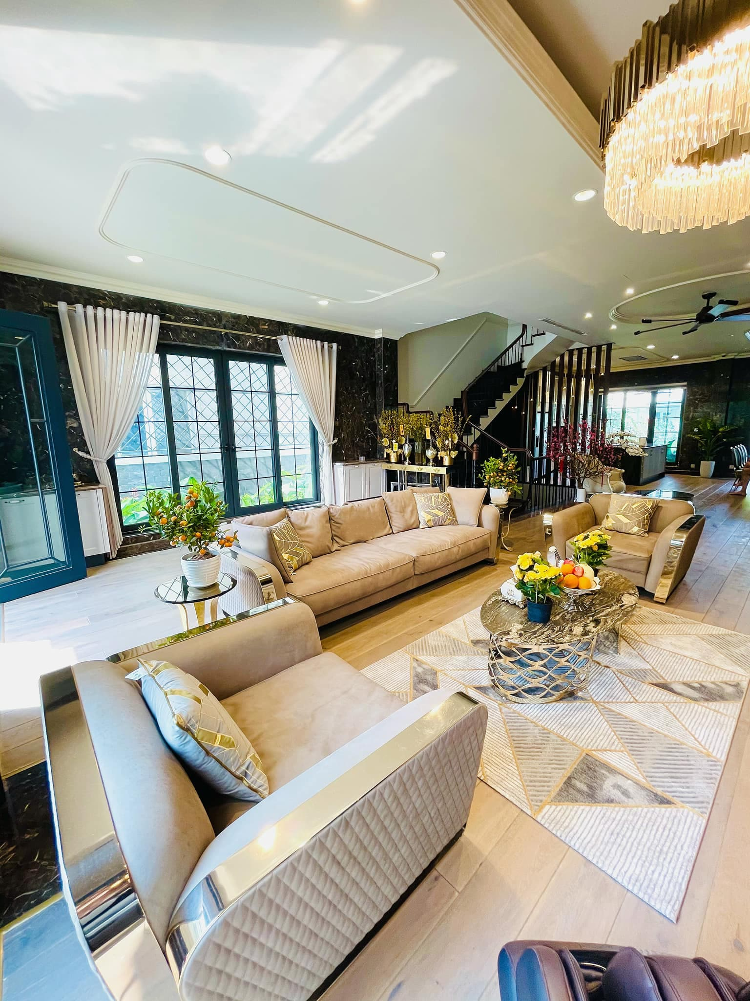 Không gian nội thất được chăm chút theo phong cách sang trọng, tinh tế, mang cảm giác không khác gì một khách sạn 5 sao thu nhỏ. Toàn bộ nội thất đều là hàng nhập khẩu từ Đức, Ý, Bồ Đào Nha…, từ bộ sofa, bàn ghế, kệ tủ cho đến từng chi tiết trang trí nhỏ nhất đều được tuyển chọn kỹ lưỡng. Mỗi món đồ không chỉ đảm bảo tính thẩm mỹ mà còn hướng đến sự tiện nghi và trải nghiệm sống cao cấp cho gia đình.