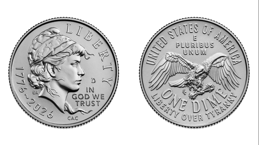 Hình ảnh mô phỏng mặt trước và mặt sau của những đồng xu mệnh giá 10 xu sẽ được đúc và phân phối vào năm 2026 để kỷ niệm 250 năm ngày độc lập của nước Mỹ - Ảnh: Cục đúc tiền Hoa Kỳ