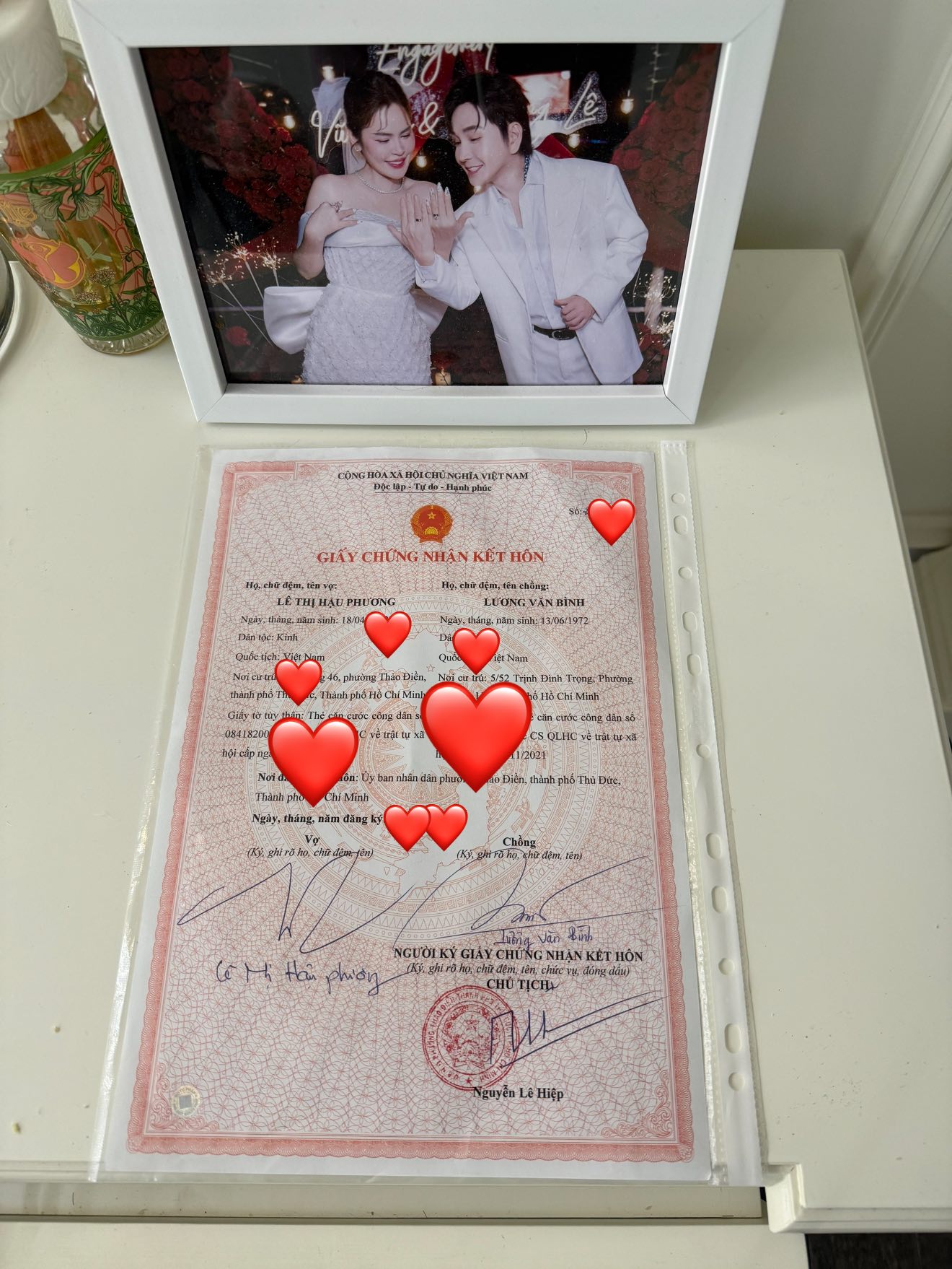 Hôm 11/7/2025, cặp đôi công bố giấy đăng ký kết hôn.