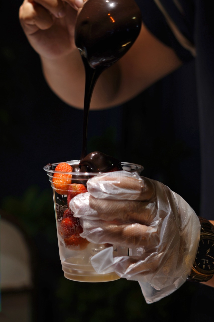 Quá trình chế biến được thực hiện trực tiếp tại chỗ, tạo nên sự tò mò và kích thích vị giác của thực khách. Từng ly dâu tây tươi được xếp gọn gàng, sau đó được rưới đều một ít sữa tươi và một lớp chocolate tan chảy đậm đà. Lớp chocolate này nhanh chóng đông lại khi gặp lạnh, tạo nên một lớp vỏ giòn tan khi cắn vào, để rồi vị ngọt ngào bùng nổ, hòa quyện với vị chua nhẹ tự nhiên của dâu tây.