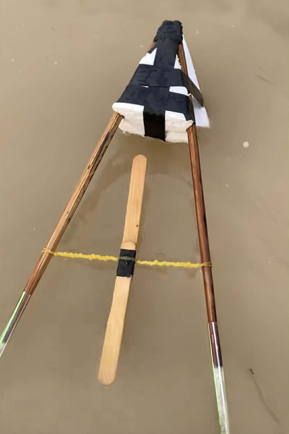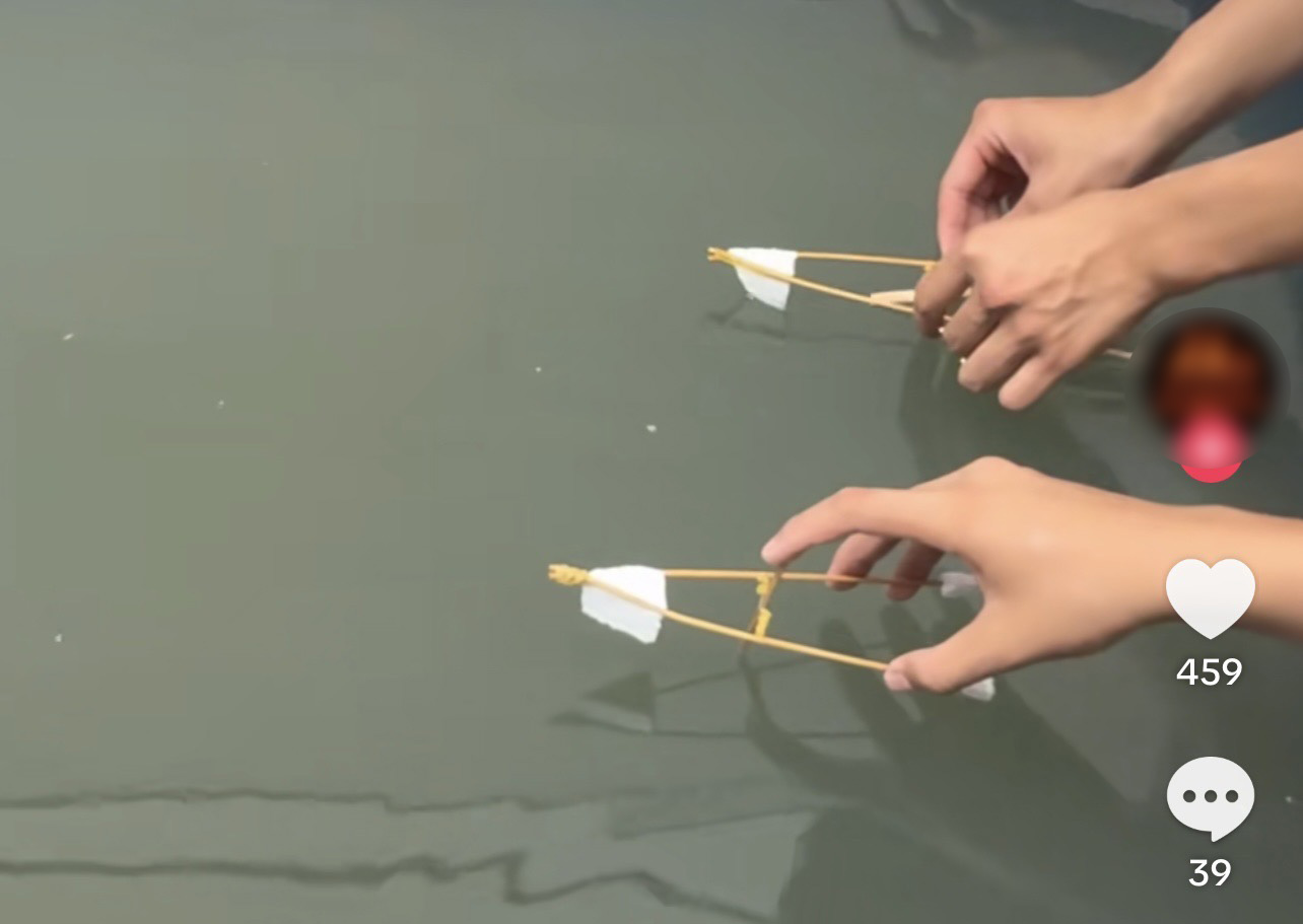 Được biết, ghe bobo là trò chơi tự chế từ xốp, dây thun, que tre,... được nhiều trẻ em yêu thích và khá nổi tiếng trên mạng xã hội Tiktok. Sau khi làm xong, các em thường mang những chiếc ghe bobo thả trôi trên mặt nước, cho đua xem ghe bobo của ai chạy nhanh hơn.