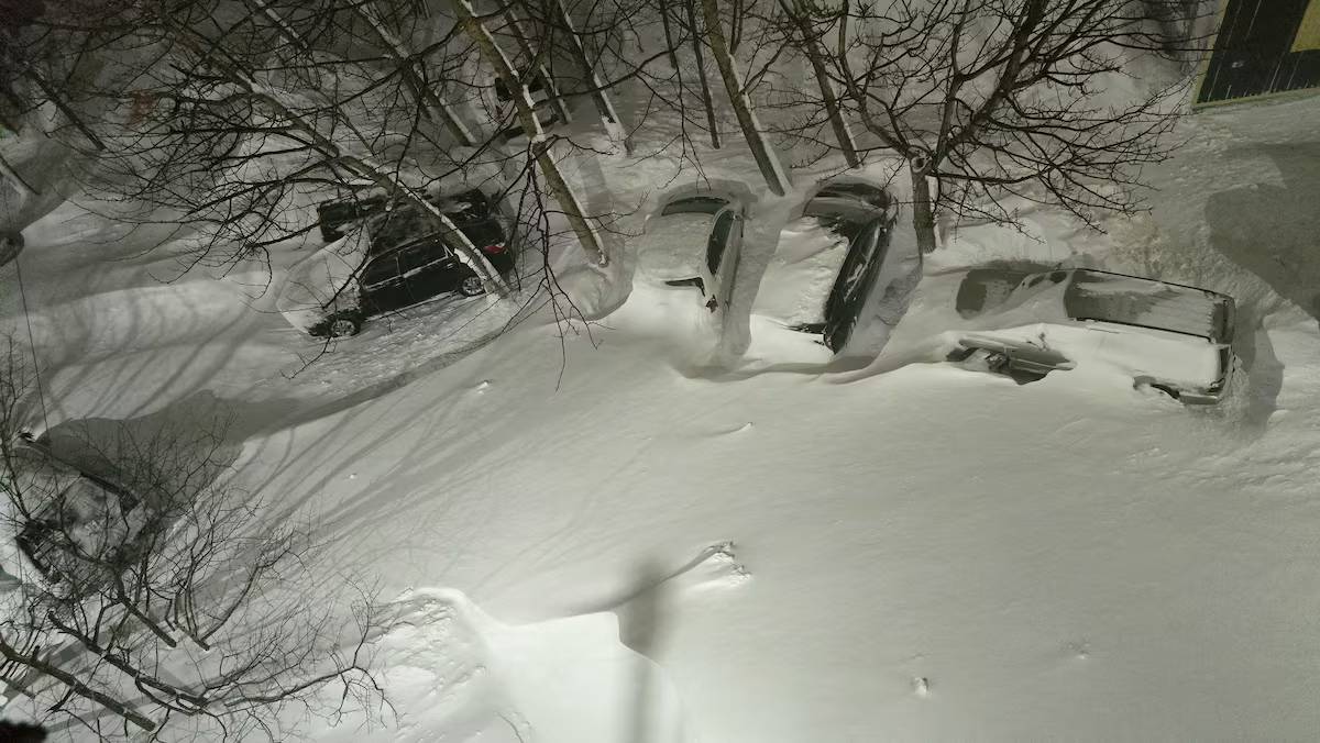 Hình ảnh do Reuters ghi lại cho thấy nhiều chiếc xe gần như bị vùi lấp hoàn toàn dưới lớp tuyết dày, trong khi ngay cả các xe dẫn động bốn bánh cũng gặp khó khăn khi di chuyển do mất độ bám hoặc bị chặn bởi những đụn tuyết khổng lồ. Người dân buộc phải tự đào lối đi để ra vào các khu nhà ở.