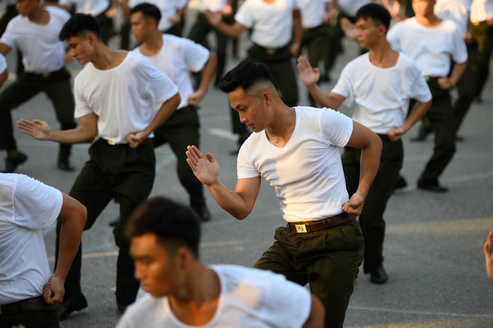 Họ là những bóng hồng trong đội hình thép, vừa mềm mại vừa đầy sức mạnh, tạo nên điểm nhấn đặc biệt giữa không khí sôi động và đầy tự hào.