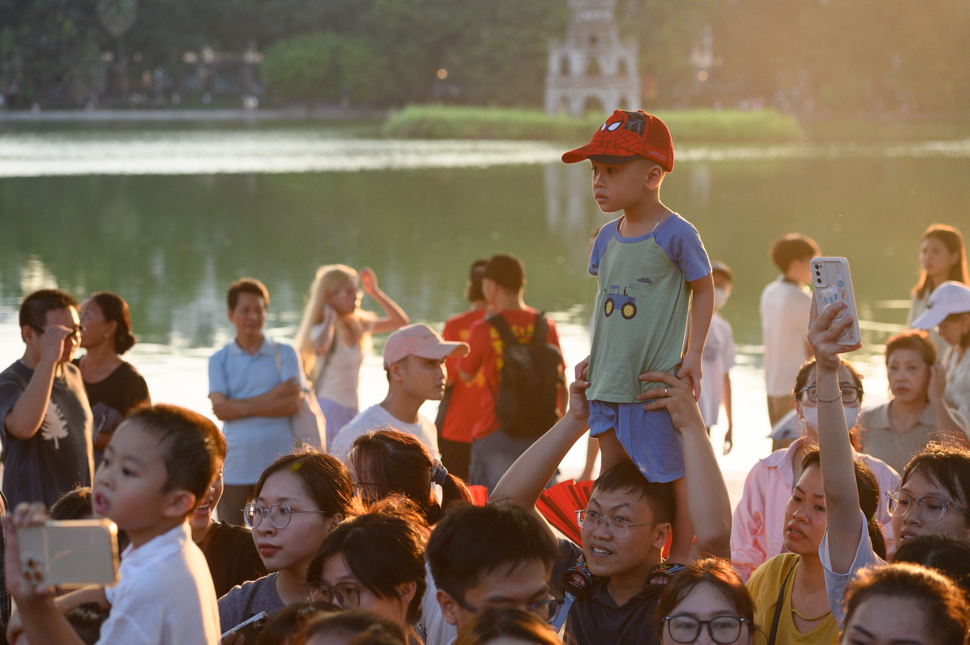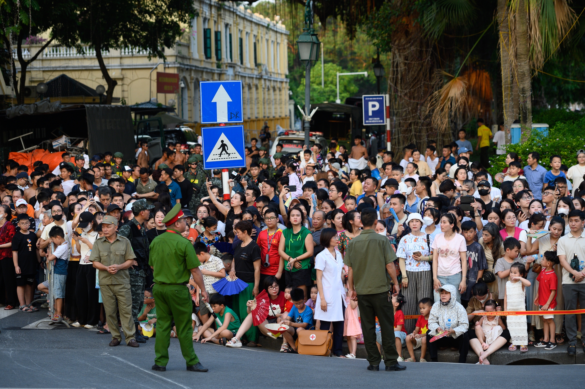 Dù thời tiết Hà Nội oi ả, nắng gay gắt gần 40 độ C, hàng nghìn người dân vẫn có mặt từ sớm để theo dõi màn trình diễn ấn tượng.