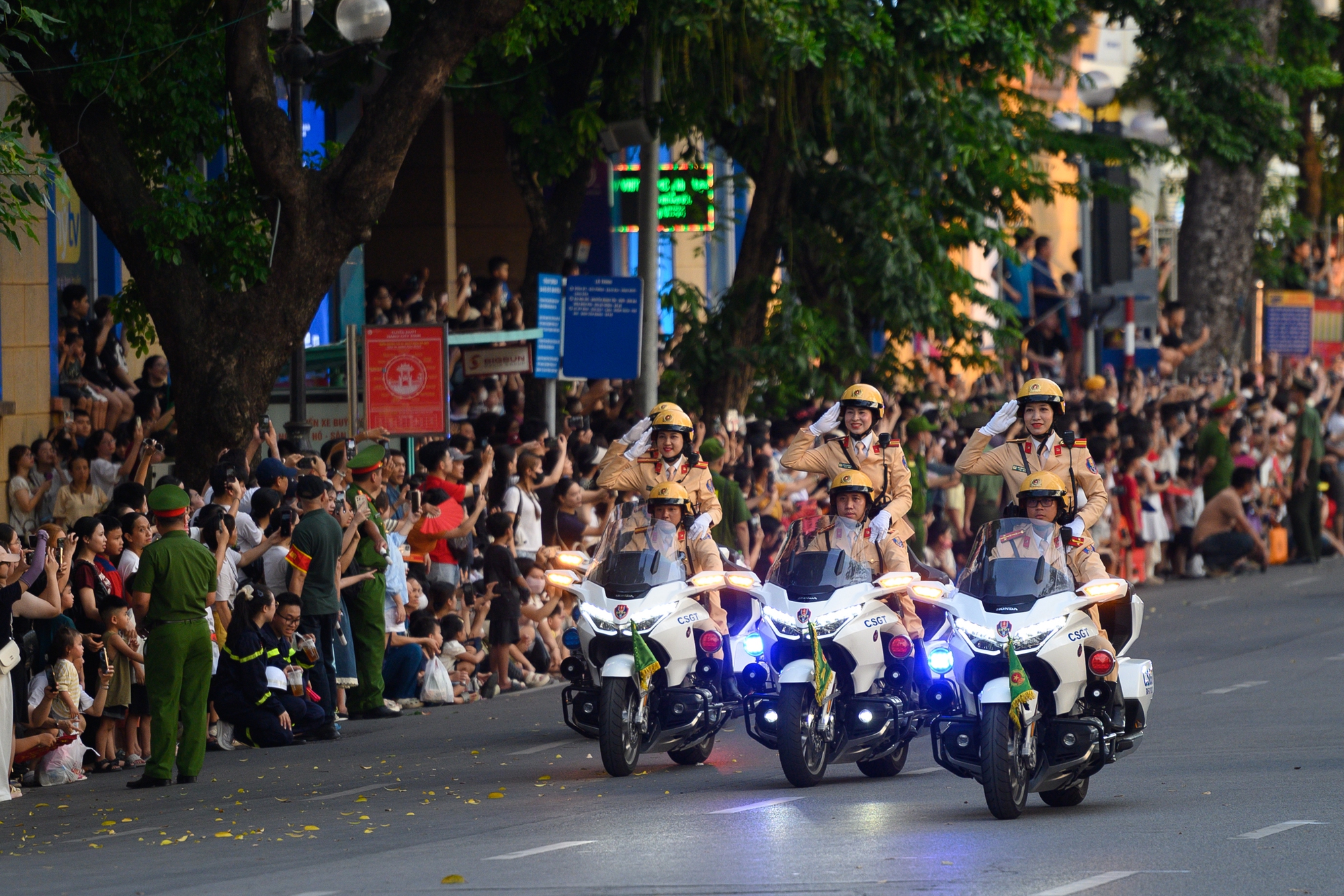 Nữ Cảnh sát giao thông - những “bóng hồng” không chỉ giữ gìn trật tự giao thông mà còn là lực lượng nòng cốt trong các đội hình dẫn đoàn