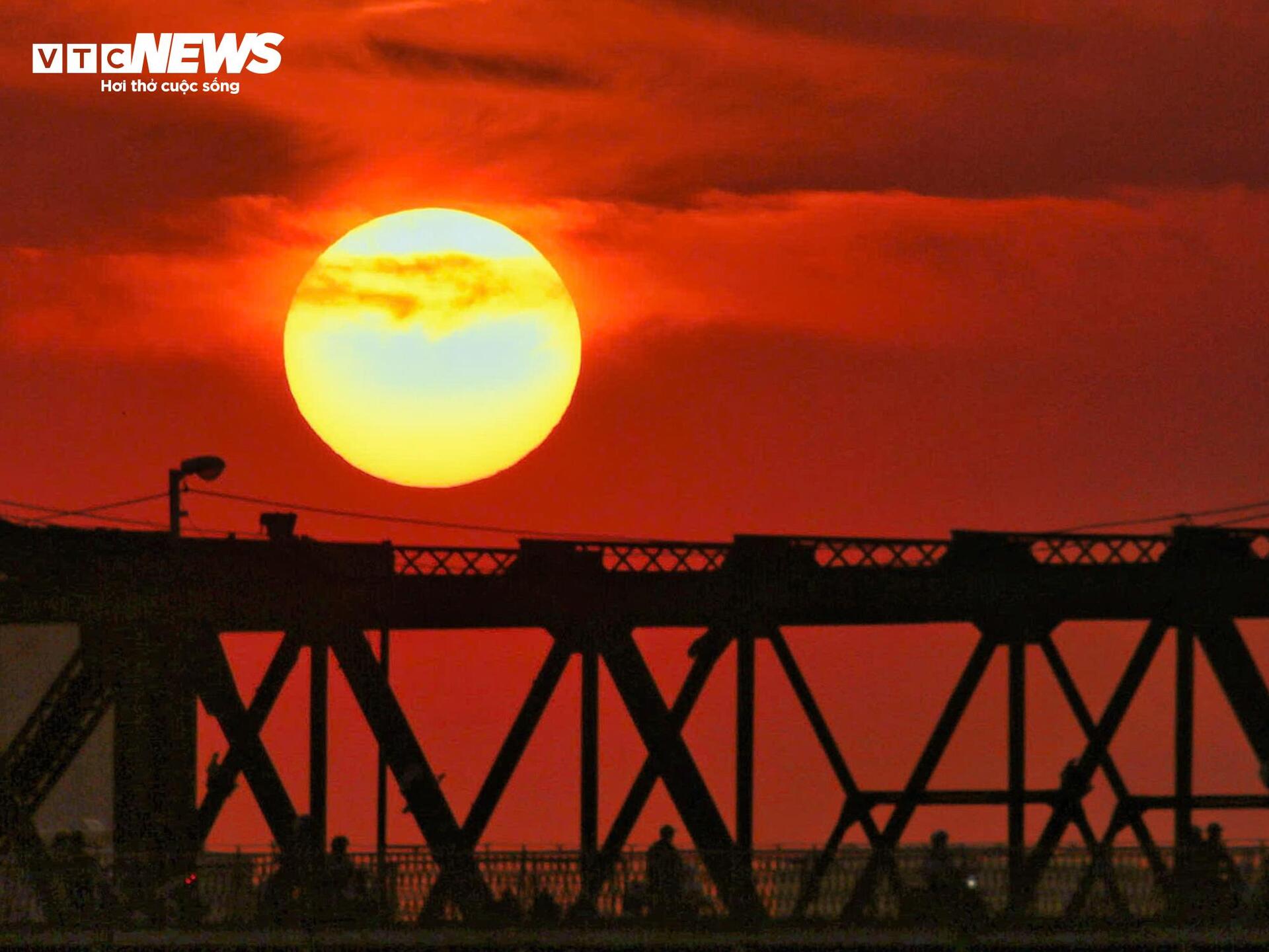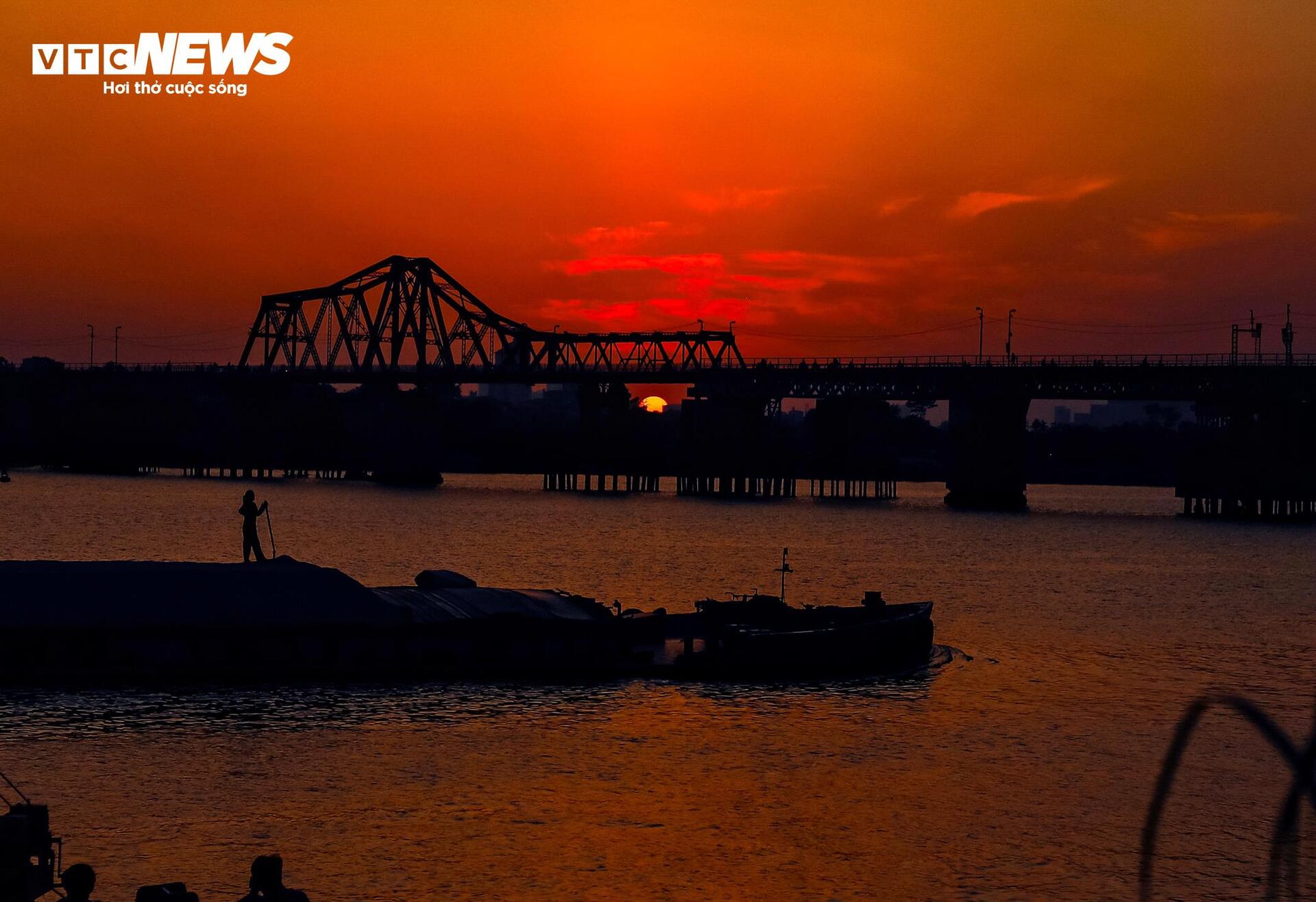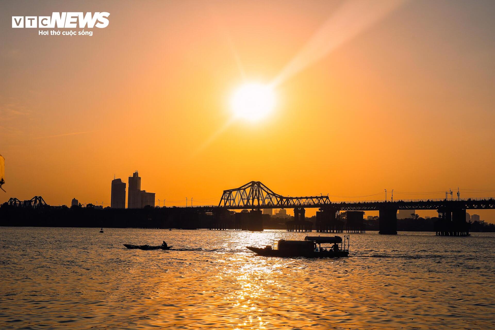Ngắm hoàng hôn đỏ rực đẹp đến nghẹt thở trên sông Hồng