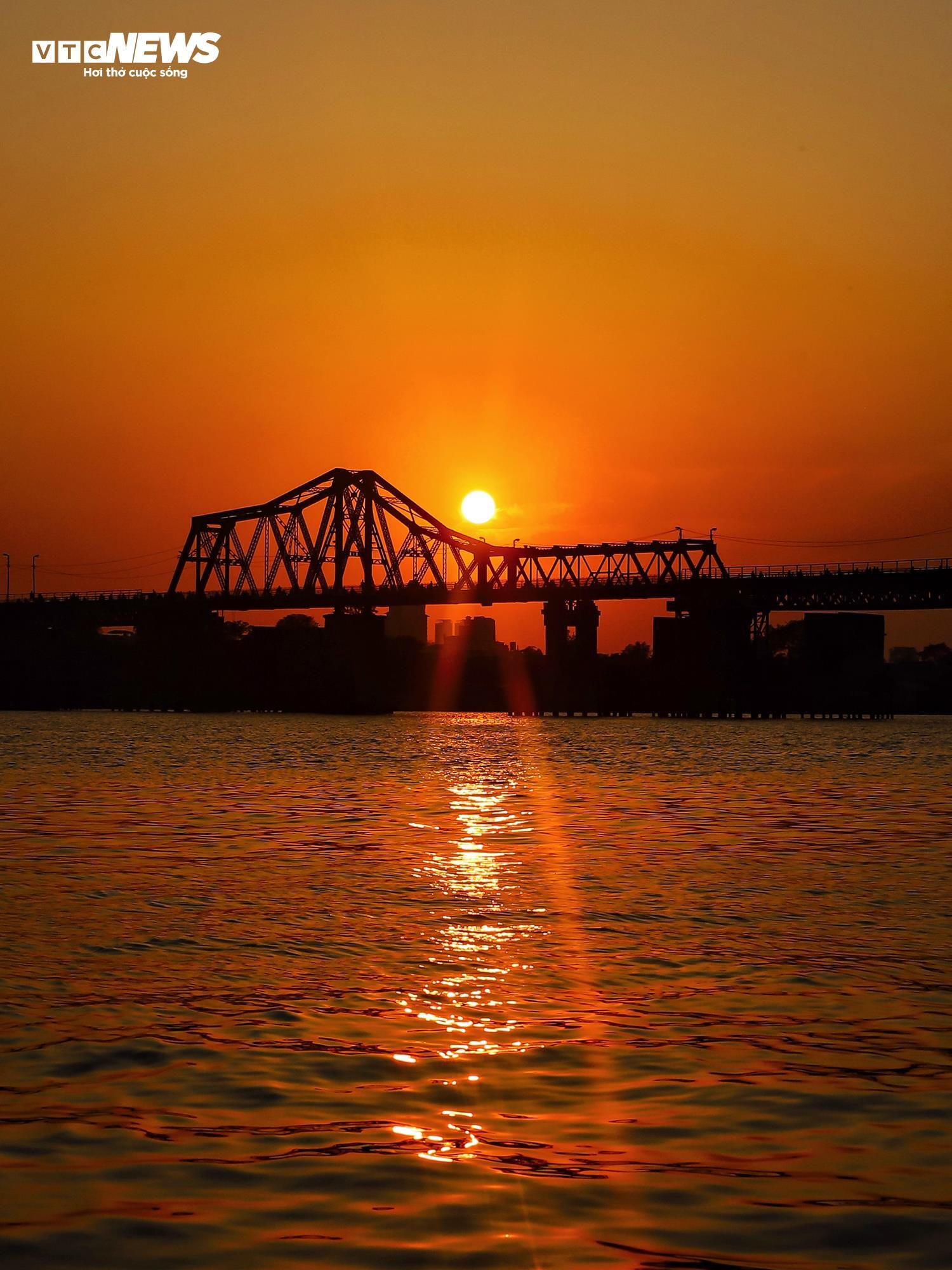 Khi mặt trời ngả dần về phía tây, cầu Long Biên như khoác lên mình một chiếc áo rực đỏ, in bóng xuống dòng sông Hồng đang lững lờ trôi. Đó là thời điểm mà nhiều người dân Hà Nội và du khách tìm đến cây cầu trăm tuổi để ngắm hoàng hôn.