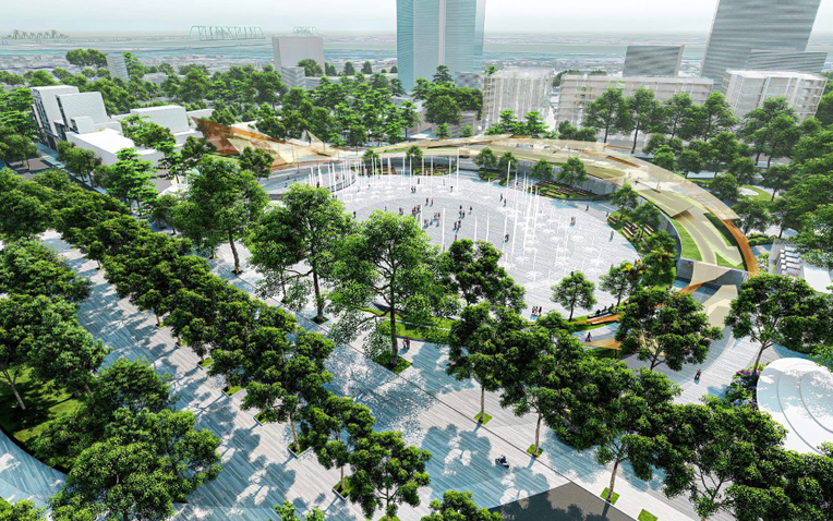 Phối cảnh minh họa quảng trường - công viên phía Đông hồ Hoàn Kiếm có tổng diện tích 2,14 ha.