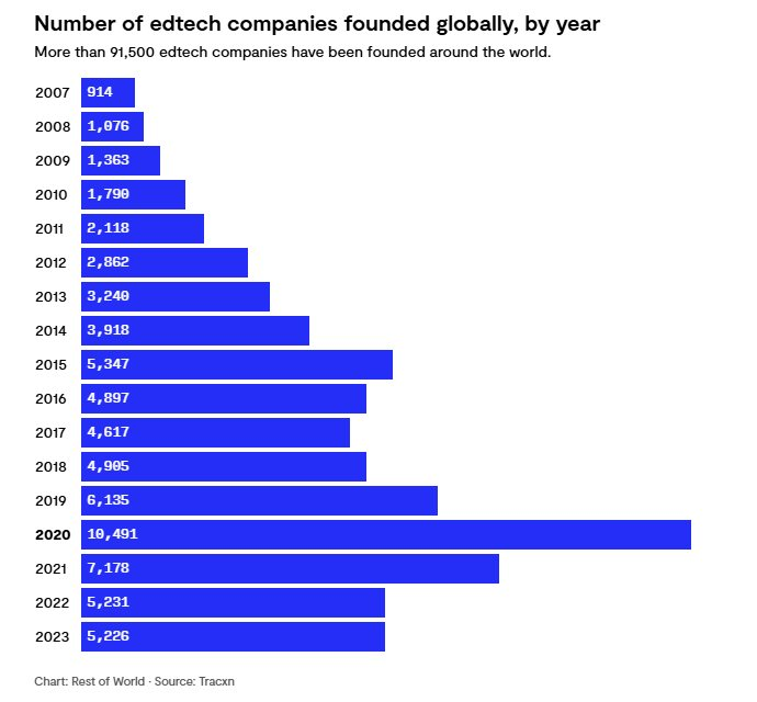 Đi cùng với sự sụt giảm về vốn là sự biến mất dần của các nhà sáng lập. Dữ liệu cho thấy chỉ có khoảng 645 công ty Edtech mới được thành lập trong năm 2025, một con số khiêm tốn nếu đặt cạnh 10.500 doanh nghiệp ra đời vào năm 2020.