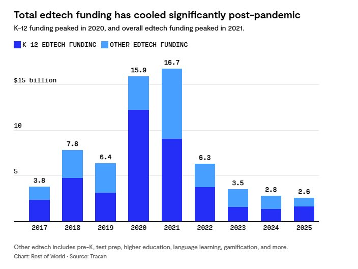 Tờ Rest of World (RoT) cho hay ngành công nghệ giáo dục (Edtech) toàn cầu từng là "đứa con cưng" của giới đầu tư trong suốt giai đoạn đại dịch nhưng hiện đang phải đối mặt với một thực tế dòng vốn dần cạn kiệt, nhường chỗ cho những công cụ AI thực dụng và các nền tảng đào tạo nhân lực có khả năng tạo ra lợi nhuận ngay lập tức.