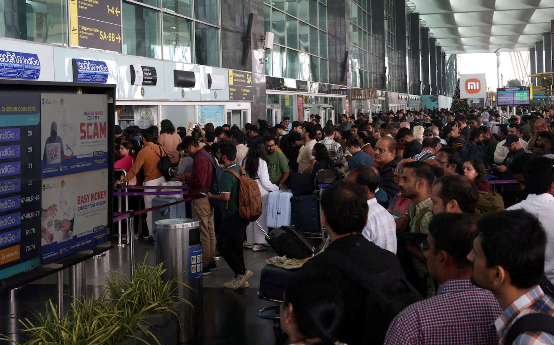 Theo Reuters, tình trạng này khiến các sân bay trọng điểm như New Delhi, Mumbai và Bengaluru bị quá tải nghiêm trọng, hàng nghìn hành khách mắc kẹt, nhiều chuyến bị trì hoãn hàng giờ hoặc bị hủy mà không có phương án thay thế kịp thời. Financial Times mô tả đây là một trong những cuộc khủng hoảng vận hành tệ nhất từng xảy ra với IndiGo, vốn nổi tiếng là hãng hoạt động ổn định nhất Ấn Độ.