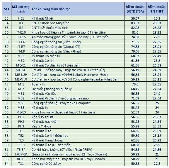 Năm 2024, Chương trình Khoa học máy tính (IT1) của trường lấy điểm chuẩn cao nhất là 83,82 đối với điểm thi ĐGTD (TSA) và 28,53 đối với điểm thi tốt nghiệp THPT. Chương trình Kỹ thuật máy tính (IT2) lấy điểm chuẩn là 82,08 đối với điểm thi ĐGTD (TSA) và 28,48 đối với điểm thi tốt nghiệp THPT, cao thứ hai năm nay. Kế đó chương trình Khoa học dữ liệu và Trí tuệ nhân tạo (IT-E10) với số điểm tương ứng là 81,6 và 28,22 điểm.