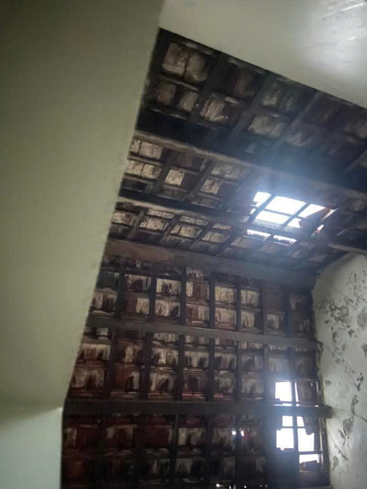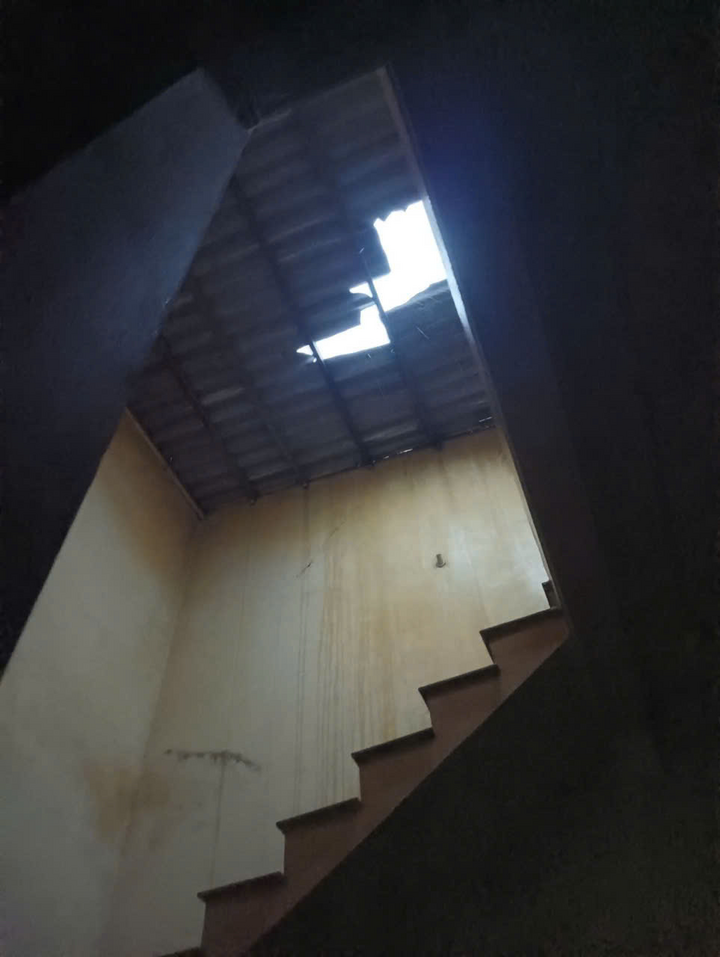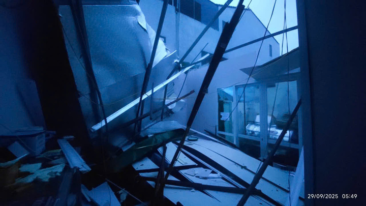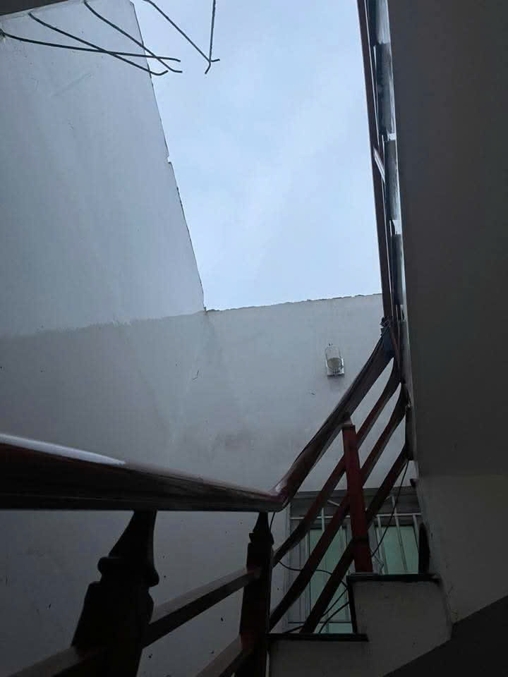 Một nhà dân bị tốc mái, vỡ cửa sổ, hư hỏng trần nhà sau khi cơn bão đi qua.