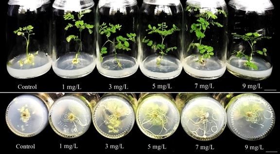 Nghiên cứu có tên: "Nghiên cứu ảnh hưởng của một số hạt nano kim loại lên sự phát sinh hình thái, sinh trưởng - phát triển, sinh lý - sinh hóa và tích lũy hợp chất thứ cấp của một số cây trồng có giá trị kinh tế nuôi cấy in vitro".