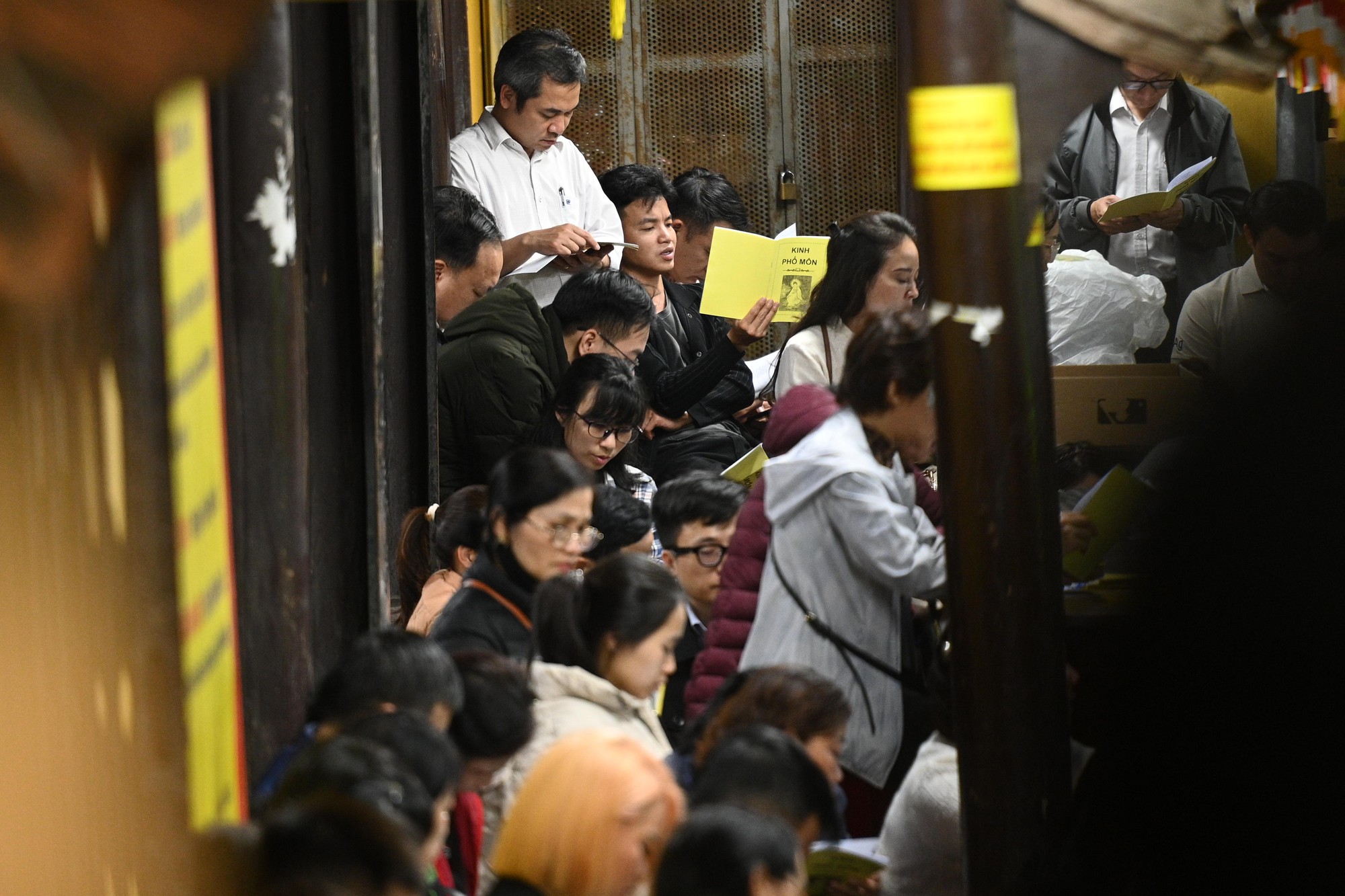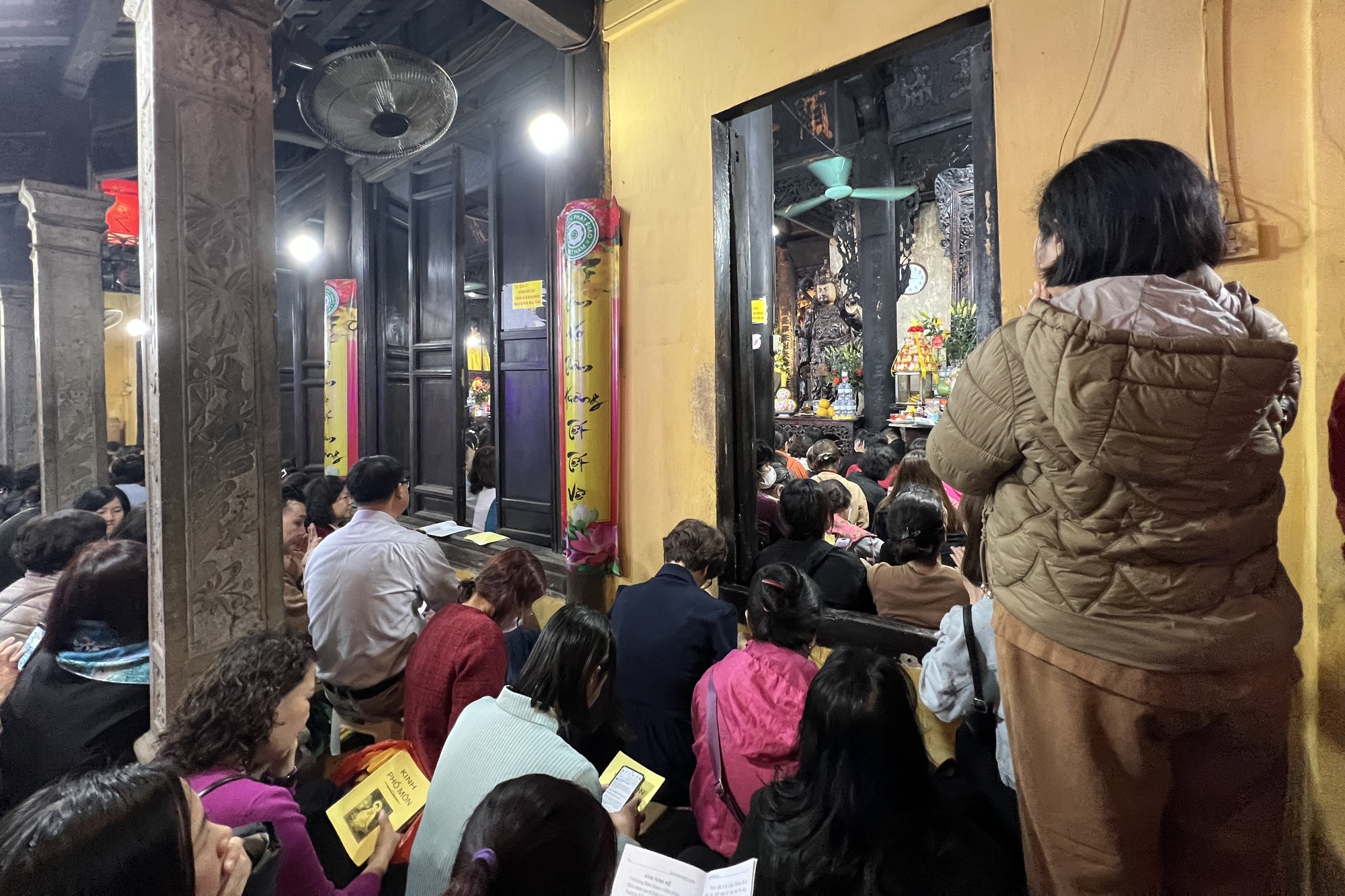 Cả những lối đi lại của chùa cũng đều chật kín người