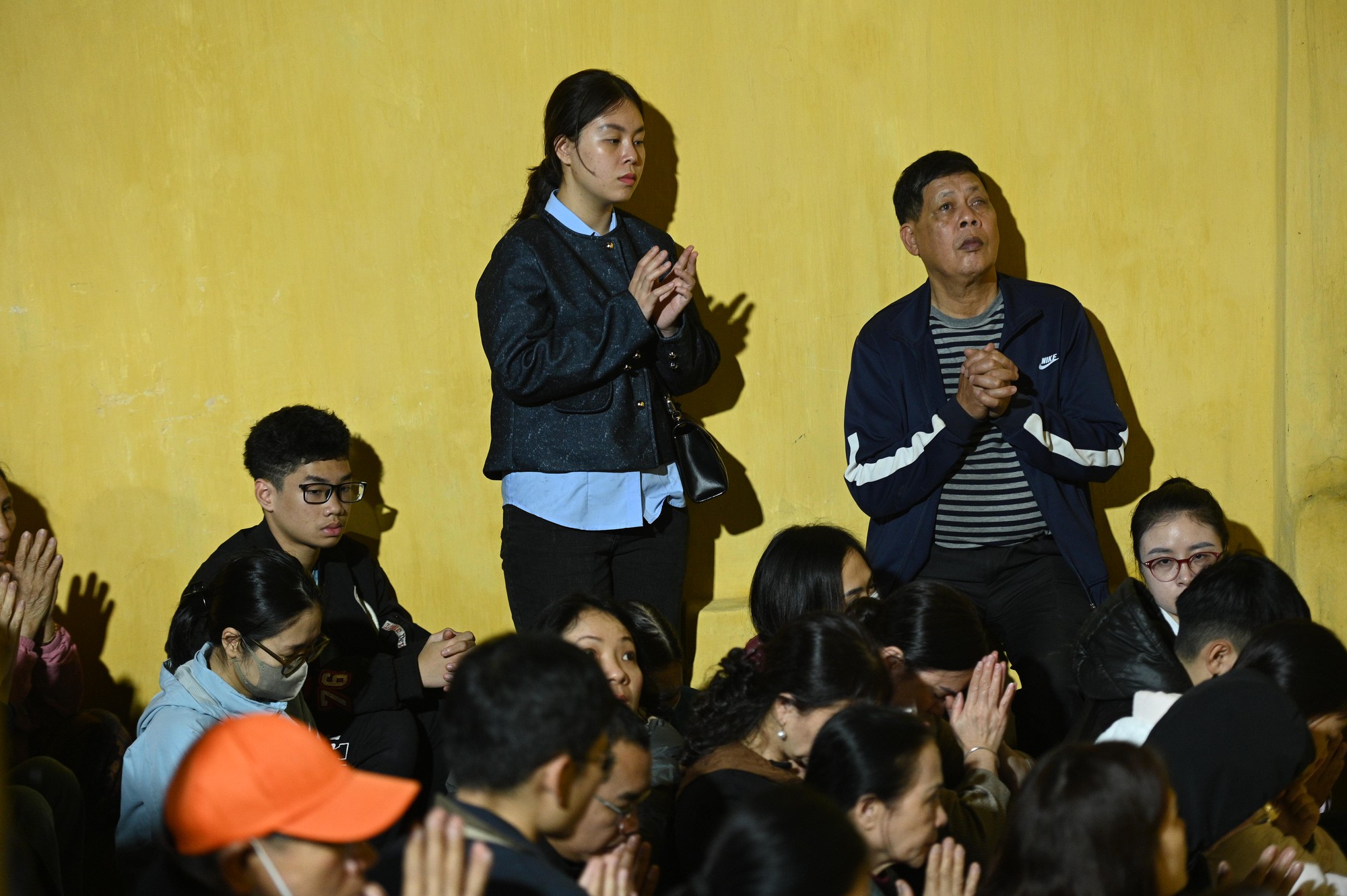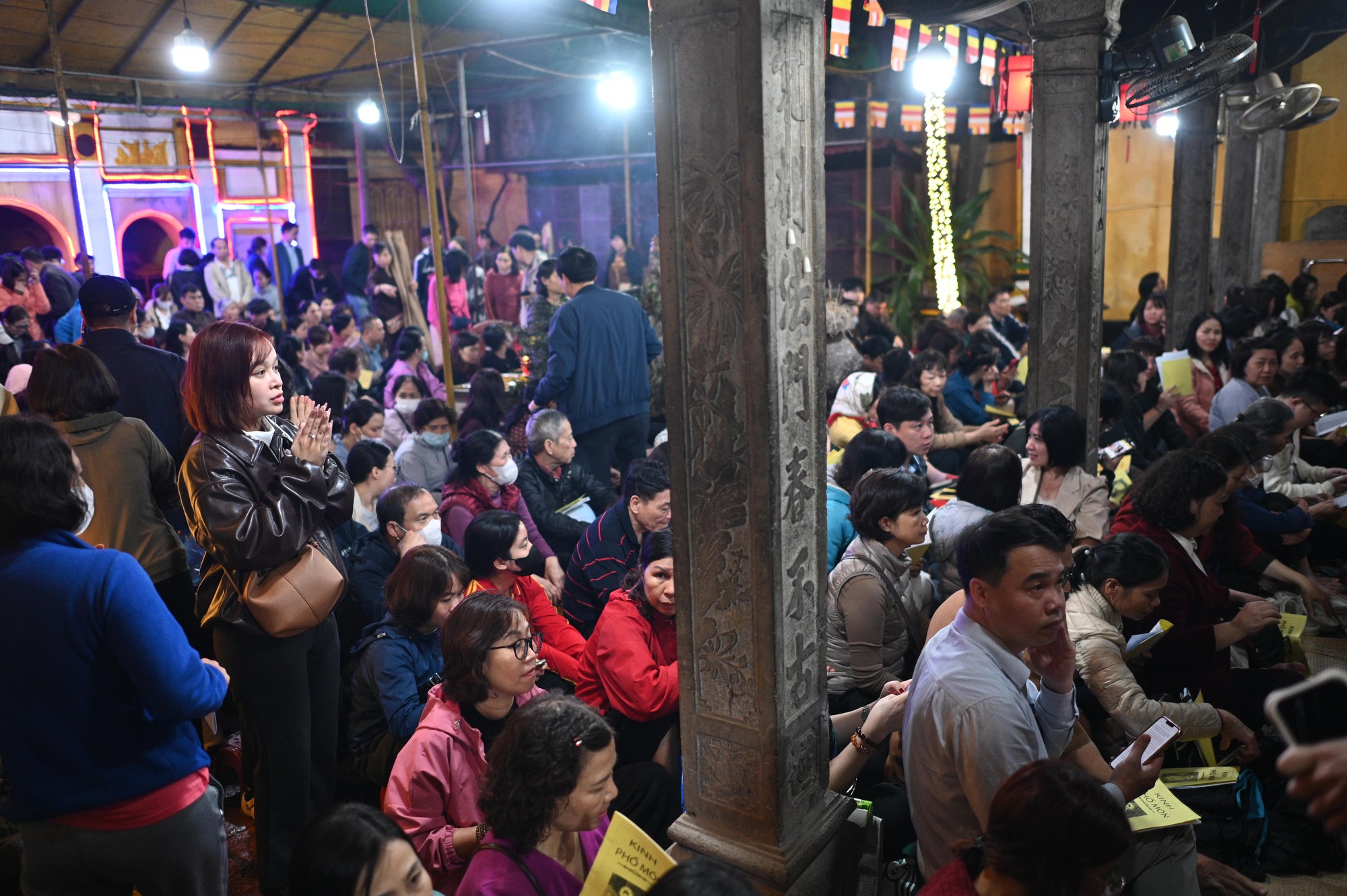 Theo ghi nhận, ngay từ khi trời nhá nhem tối, dòng người đông đúc đã tiến vào khuôn viên chùa. Tiếng chuông chùa ngân vang xen lẫn tiếng tụng kinh đều đặn tạo nên một không gian linh thiêng giữa phố xá khu vực Ngã tư Sở vốn đông đúc