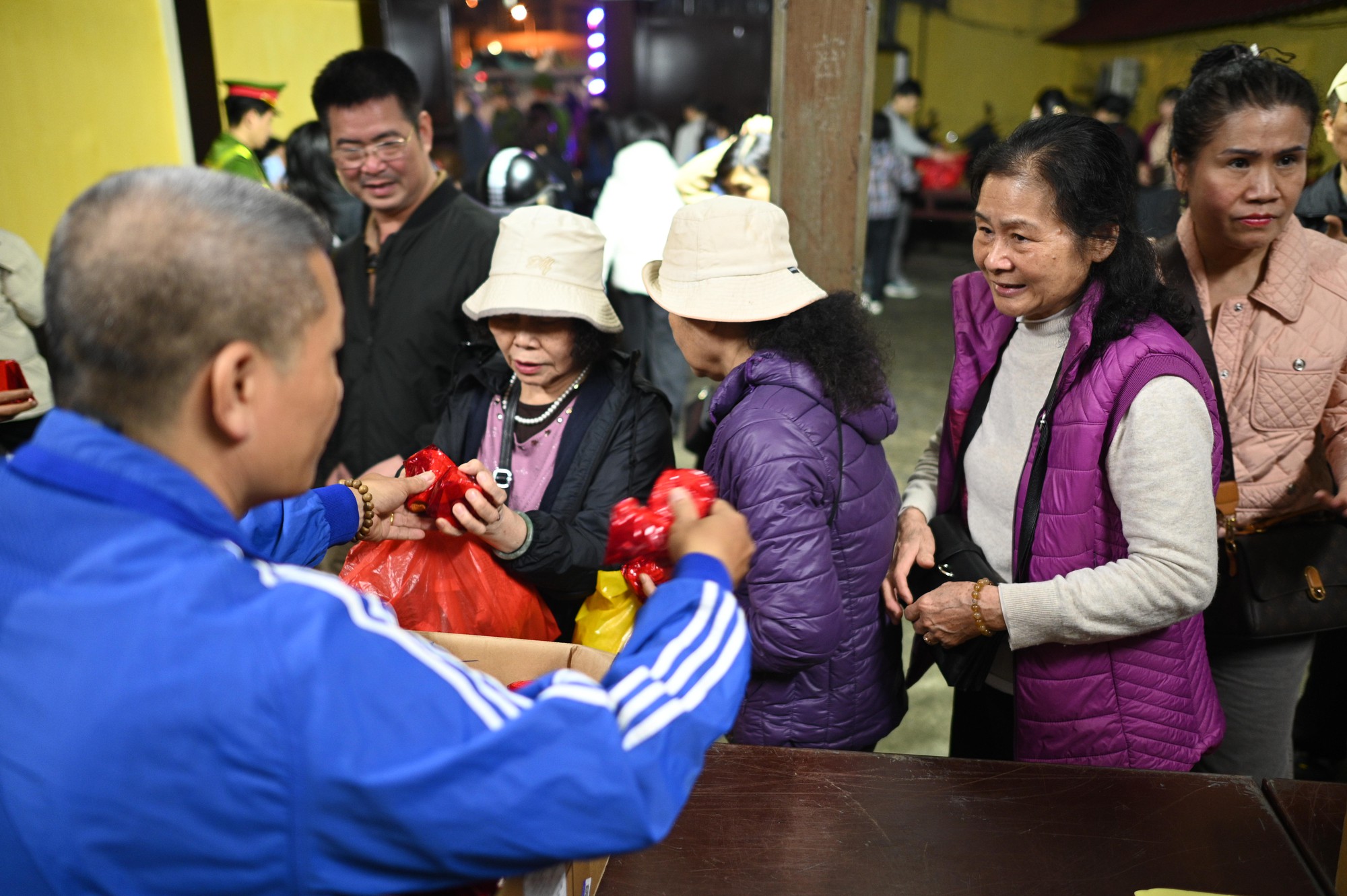 Sau khi kết thúc, người dân tiến đến bàn phát oản để xin lộc đầu năm