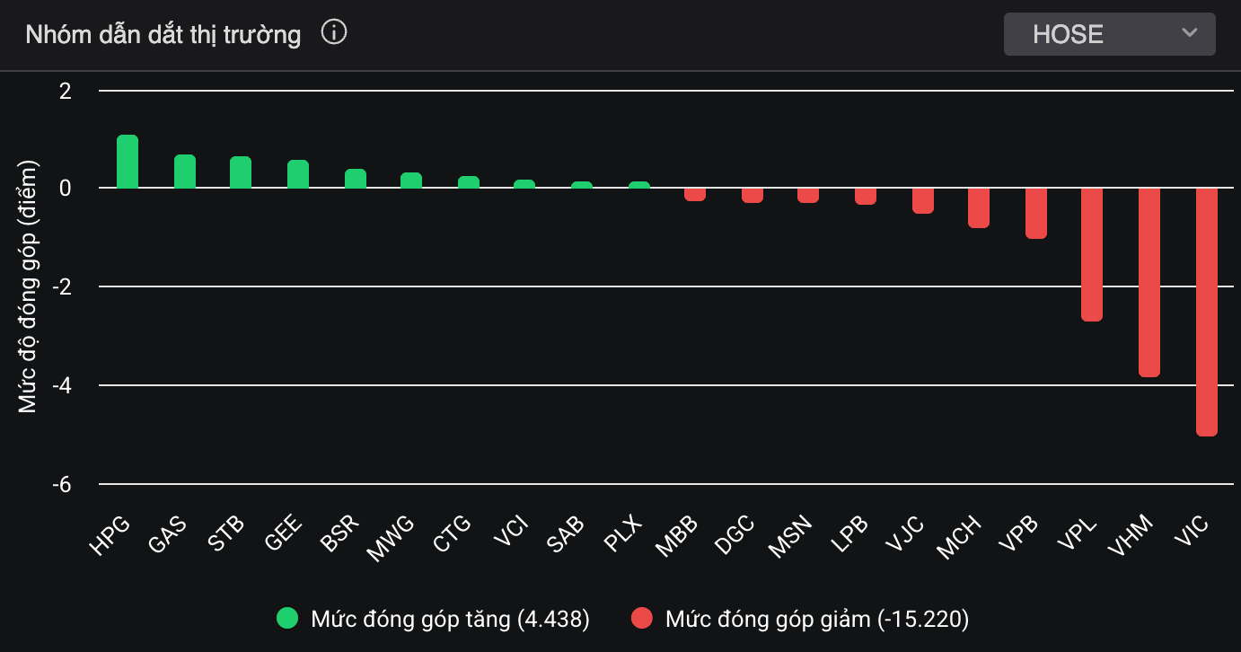 Dòng tiền cũng có dấu hiệu lan toả sang nhóm thép, ngân hàng và dầu khí. HPG giữ sắc xanh xuyên suốt phiên, đóng vai trò nâng đỡ chỉ số. STB trở thành điểm sáng của nhóm ngân hàng khi tăng mạnh, trong khi nhiều cổ phiếu lớn khác thu hẹp đà giảm. Ở nhóm chứng khoán và dầu khí, một số mã cũng bật tăng trở lại, góp phần giữ nhịp hồi cho thị trường.