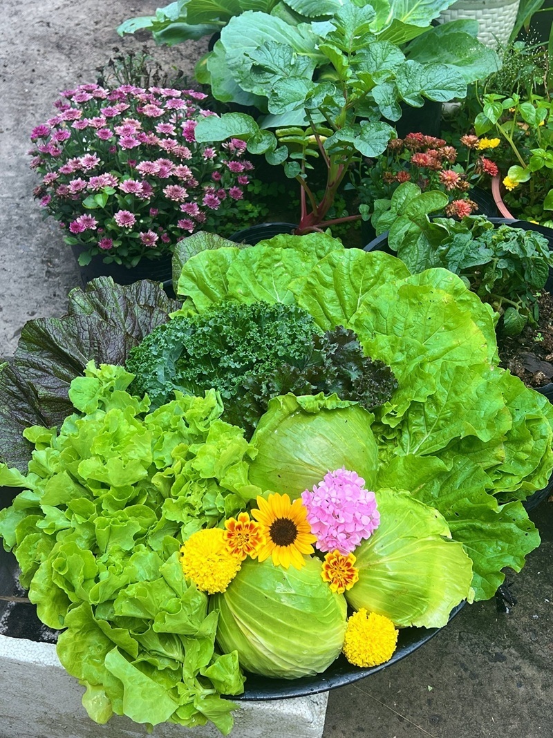 Thành quả sau bao ngày vất vả là một khu vườn trĩu quả với đủ loại từ rau muống, cải ngọt, bầu, bí, mướp đến những loại khó tính như cải kale, ớt chuông, dâu tây hay cả táo và cóc.