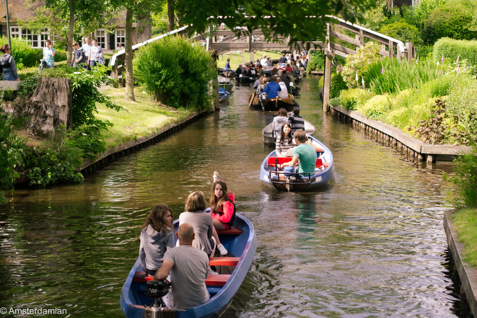 Du khách khi đến Giethoorn thường đậu xe ở bãi ngoài làng rồi đi bộ hoặc thuê thuyền để tham quan. Phương tiện phổ biến nhất là “whisper boat” - những chiếc thuyền máy nhỏ chạy bằng động cơ điện êm ái, hầu như không phát ra tiếng ồn và rất thân thiện với môi trường. Ngoài ra, nhiều người cũng chọn đi bộ hoặc đạp xe dọc theo những con đường mòn nhỏ xuyên qua cảnh quan thiên nhiên tĩnh lặng.