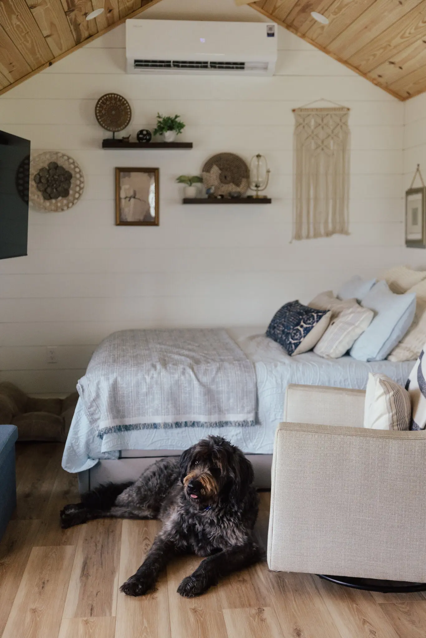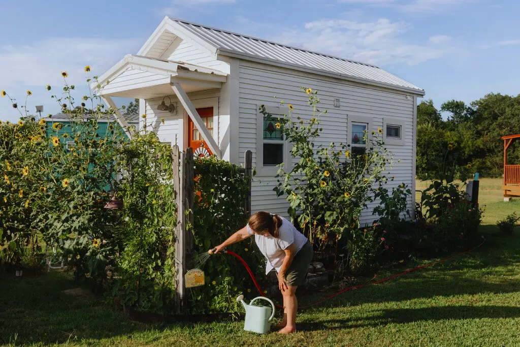 The Bird’s Nest tọa lạc tại vùng nông thôn của Texas không phải ngẫu nhiên. Đây là nơi đất đai còn rẻ, lại có luật xây dựng cho phép dựng các ngôi nhà nhỏ di động mà không quá khắt khe về giấy phép. Mỗi căn nhà ở đây chỉ cần rộng khoảng 35–40 mét vuông, chi phí dựng chỉ từ 65.000 đến 85.000 USD, rẻ hơn nhiều so với giá nhà trung bình ở Mỹ. Các cư dân góp tiền thuê đất, trả phí điện nước, internet và bảo dưỡng chung. Khu đất cũng có 9 chú chó được họ nuôi như “những đứa con bé bỏng” của mình.