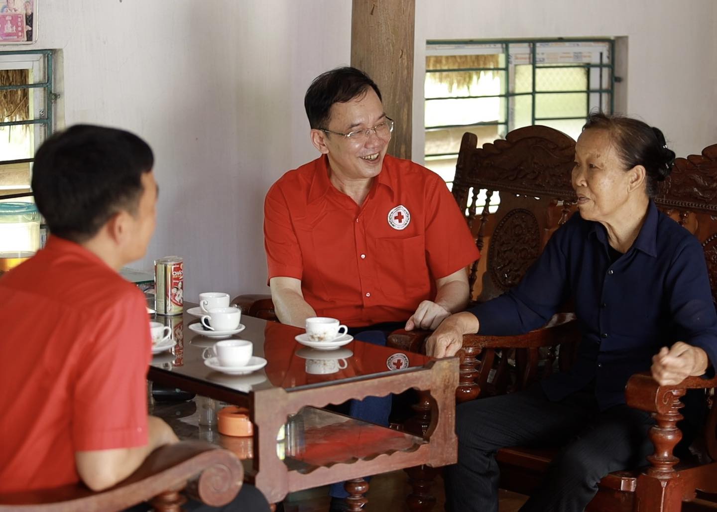 Cán bộ Hội chữ thập đỏ đến gặp gỡ và tuyên truyền cho người dân