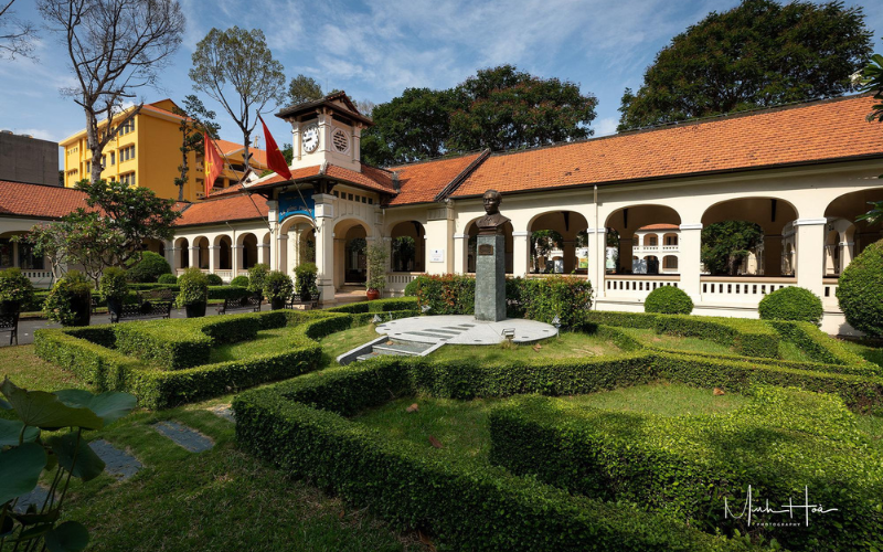 Ngôi trường được thiết kế bởi kiến trúc sư người Pháp Ernest Hébrard, mang đậm phong cách kiến trúc Pháp cổ điển. Toàn bộ khuôn viên trường rộng khoảng 8 hecta, với nhiều mảng xanh tạo nên không gian học tập thoáng đãng và thơ mộng.