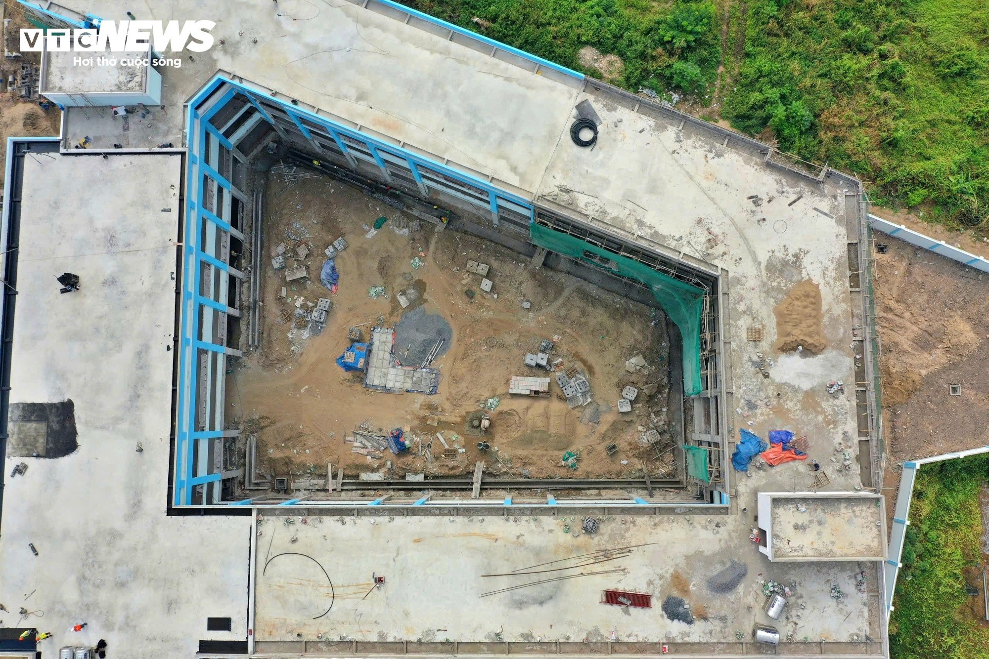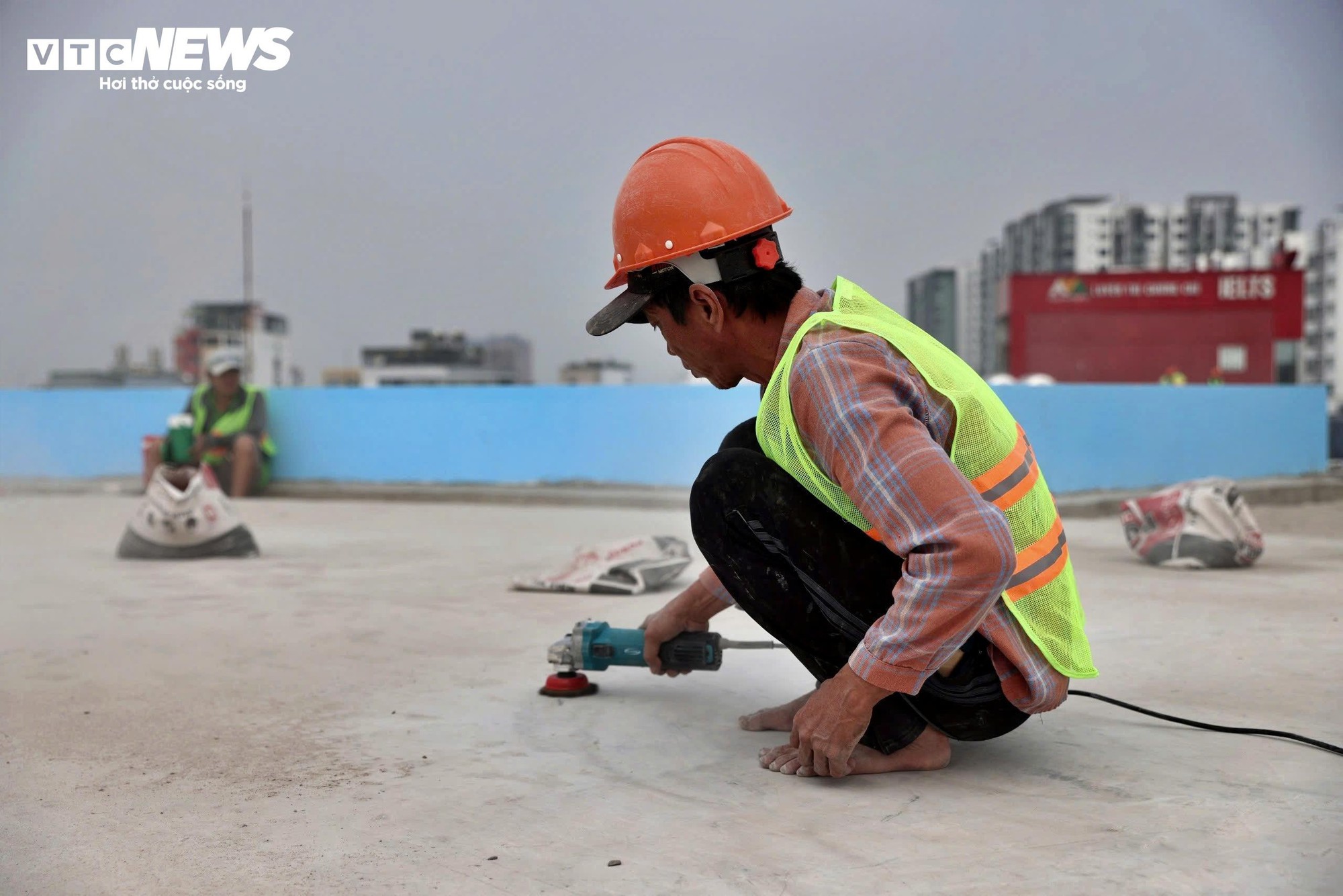 Khoảng 150 công nhân đang tập trung thi công đồng loạt các hạng mục. Nhiều dãy hành lang tại các tầng và trên sân thượng đang được công nhân tiến hành vệ sinh, hoàn thiện để chuẩn bị cho các bước thi công tiếp theo.