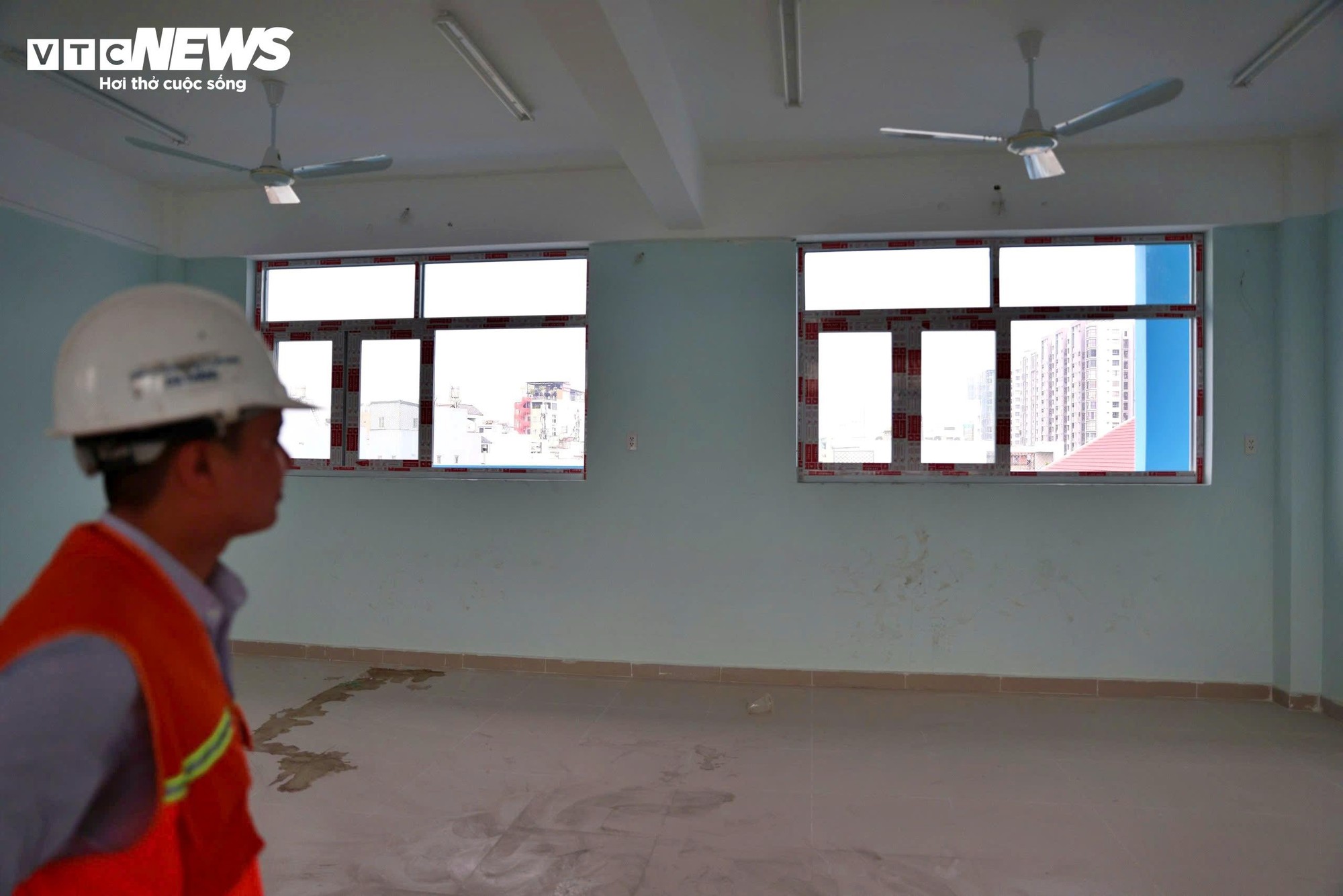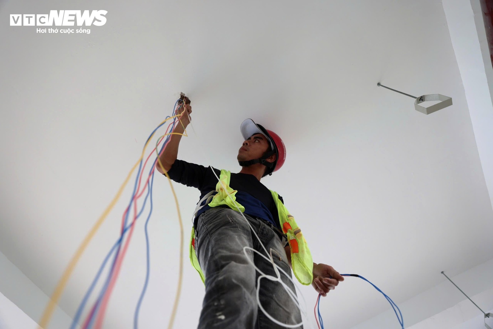 Hiện nay, nhiều hạng mục hoàn thiện như sơn tường, lát gạch hành lang, lắp đặt thiết bị điện và các công trình phụ trợ đang được triển khai đồng loạt. Một số dãy hành lang ở các tầng đã được vệ sinh, hoàn thiện sau khi lát gạch, tạo diện mạo khang trang cho công trình.