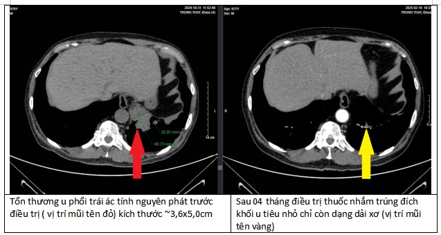 Sau 4 tháng điều trị, các khối u tại phổi, não, xương của bệnh nhân đều thu nhỏ lại. Đặc biệt tại phổi, khối u đã biến mất tới 90%. Đây là một kết quả kinh ngạc, tạo ra kỳ tích cho bệnh nhân.