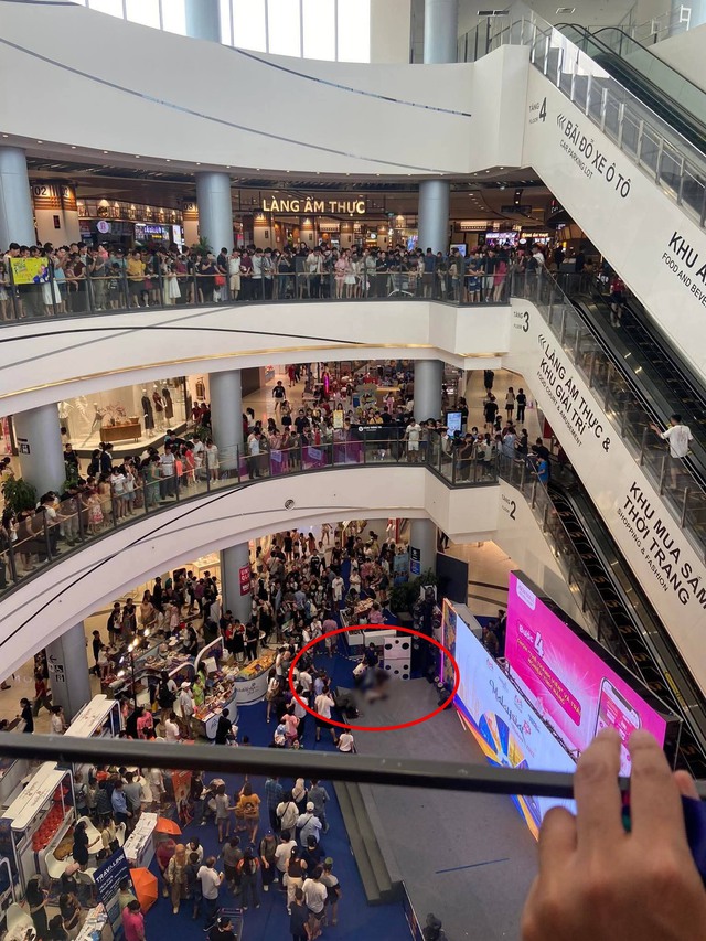 Mới đây, nhiều người dùng mạng xã hội bàng hoàng trước hình ảnh một nạn nhân bị rơi từ tầng cao của trung tâm thương mại xuống đất. Theo hình ảnh, clip lan truyền, nạn nhân rơi từ trên cao xuống vị trí sân khấu ở tầng 1 của trung tâm thương mại. Rất đông người dân đang thăm quan, mua sắm tại đây đã chạy tới hoặc đứng từ trên cao theo dõi. Sự việc xảy ra vào khoảng 13 giờ 30 phút ngày 3/8 tại một trung tâm thương mại ở địa bàn phường Long Biên (Hà Nội).