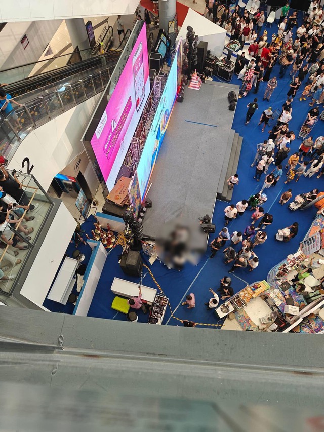 Nạn nhân được cho là rơi từ tầng 4 của trung tâm thương mại xuống khu vực sân khấu tầng 1.