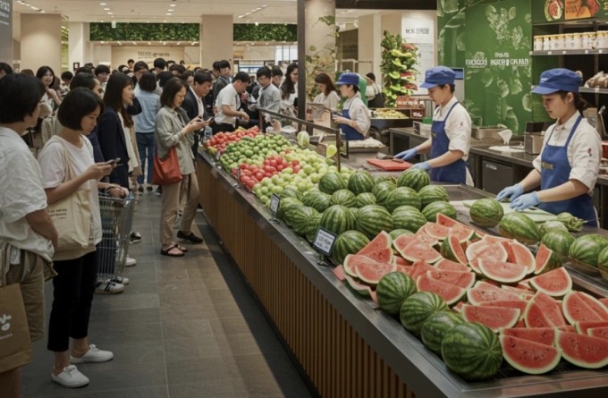 Tại thủ đô Seoul, cảnh tượng hàng trăm người kiên nhẫn chờ đợi nhiều giờ liền trước quầy dịch vụ Fresh Table – nơi chuyên cắt trái cây tươi ngay tại cửa hàng – đang trở thành hình ảnh quen thuộc. Đặc biệt, dưa hấu gọt sẵn hiện là “ngôi sao” thu hút đông đảo khách hàng, bất chấp mức giá cao và thời gian chờ có khi lên tới gần 3 tiếng.