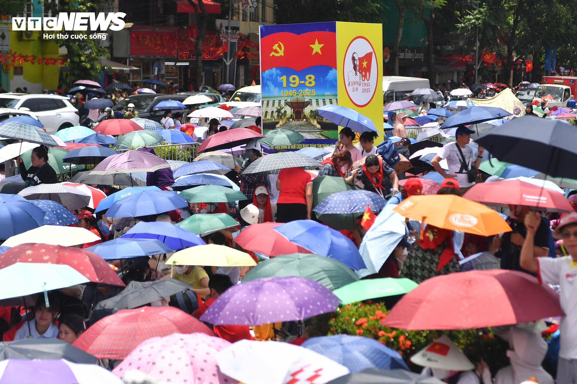 Không chỉ có người dân Thủ đô, nhiều du khách từ xa cũng hòa vào biển người cờ đỏ sao vàng. Chị Trần Thị Vân (42 tuổi, Thanh Hóa) cùng gia đình bắt xe đêm ra Hà Nội, đến Ba Đình từ 5h sáng. Họ trải áo mưa trên vỉa hè, mang theo xôi, nước chè, hướng dương để cùng chờ đợi. “Đã lâu lắm rồi mới lại có dịp được xem hợp luyện diễu binh ở Thủ đô. Cả nhóm ai cũng hồi hộp, tự hào”, chị Vân nói.