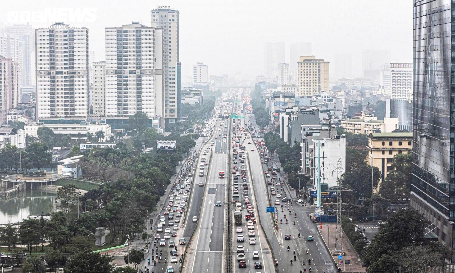 Đáng chú ý, đoạn từ khu vực nút giao Nguyễn Trãi - Khuất Duy Tiến đến Linh Đàm xảy ra ùn tắc kéo dài khoảng 5km.