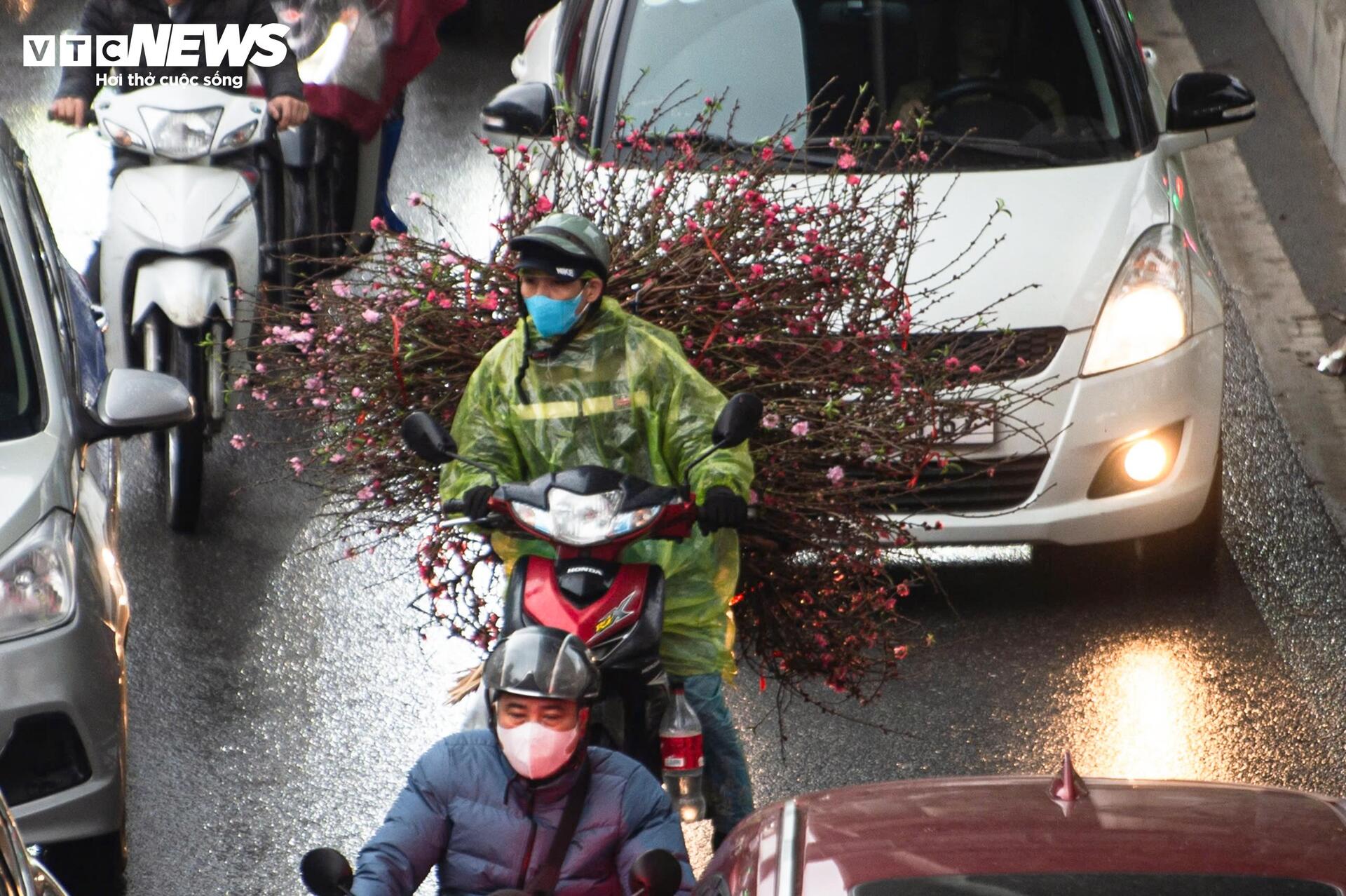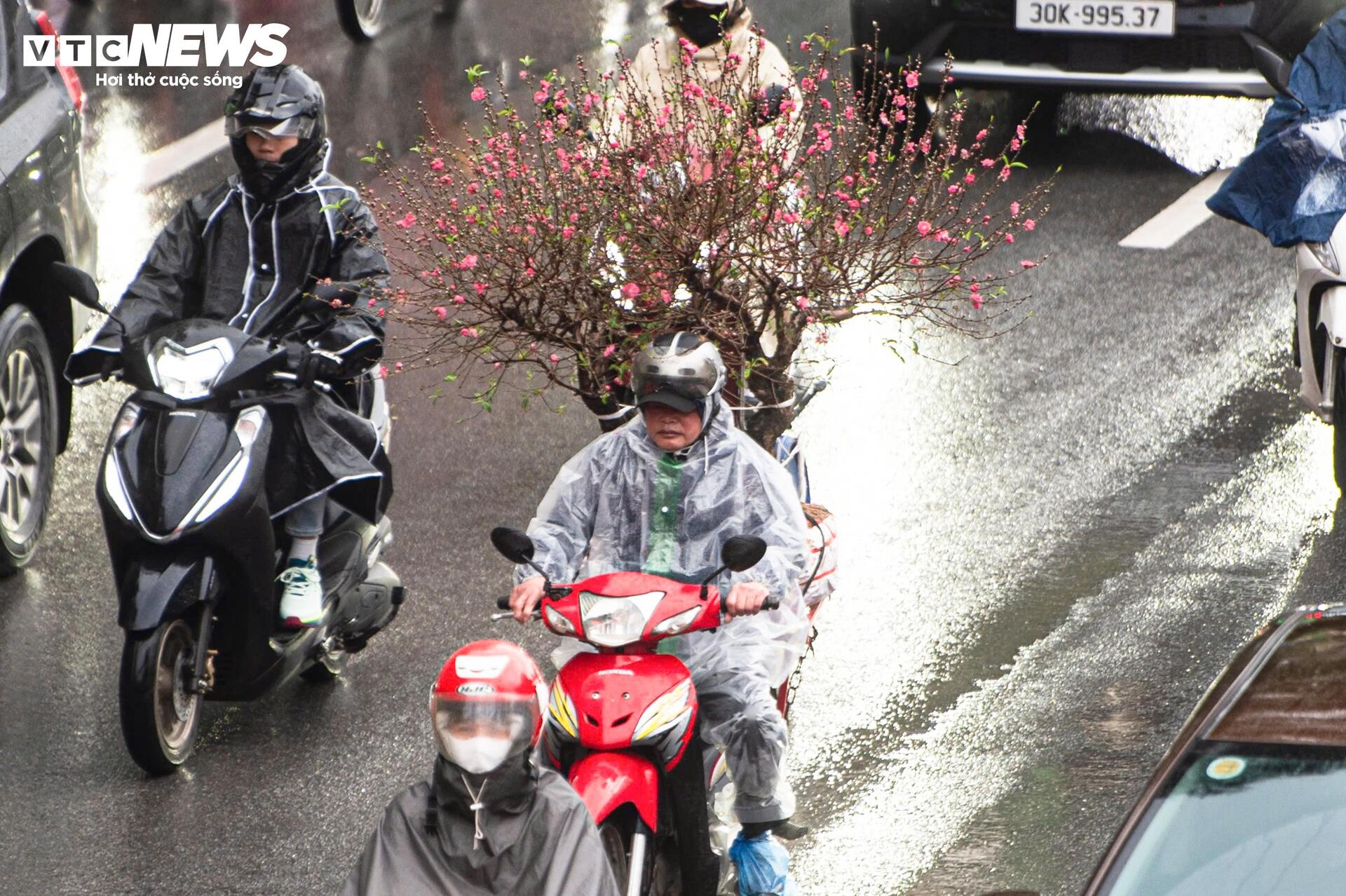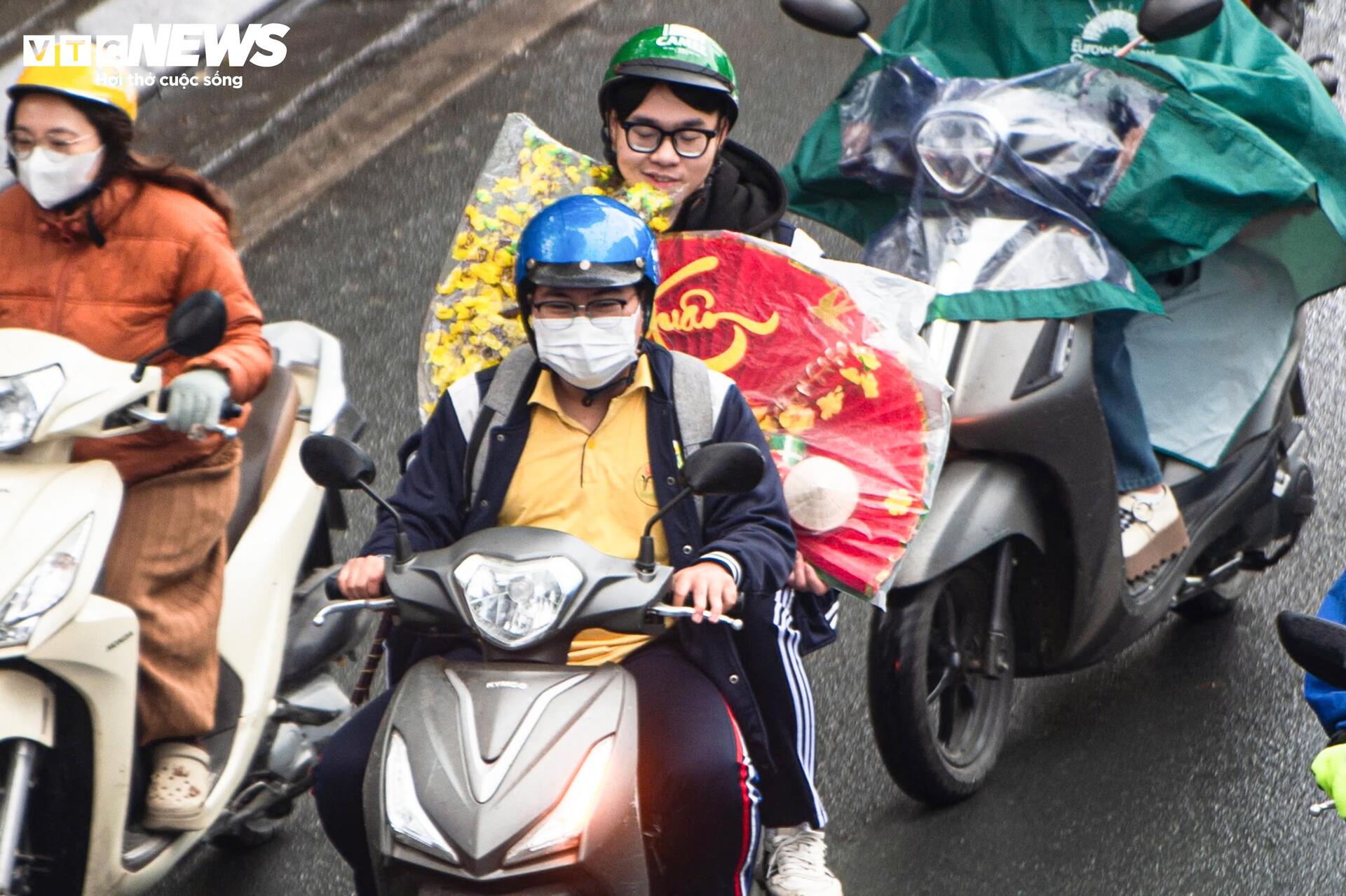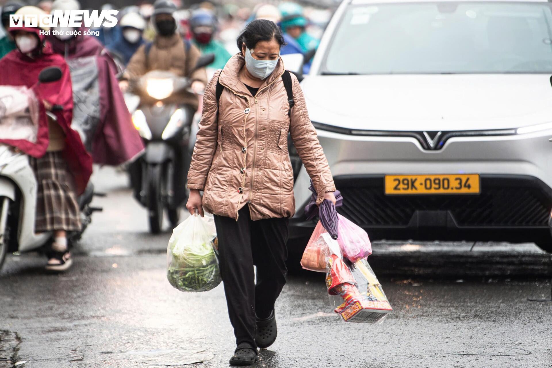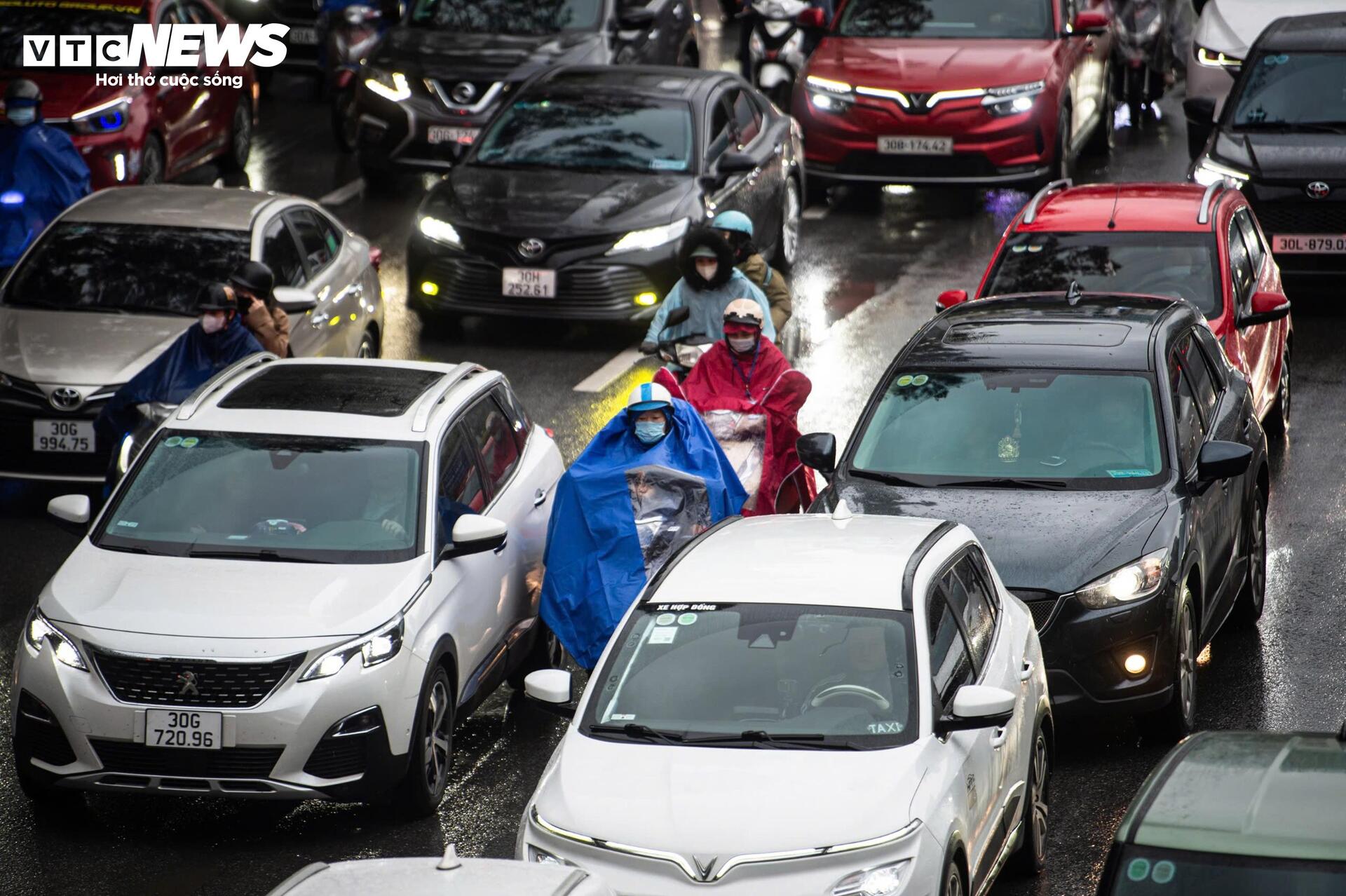 Không chỉ chịu áp lực từ lượng phương tiện tăng cao, người tham gia giao thông còn gặp nhiều khó khăn do thời tiết bất lợi. Nhiệt độ ngoài trời chỉ khoảng 12℃ , kèm mưa phùn và gió lạnh, khiến tầm nhìn giảm, mặt đường trơn trượt, buộc các tài xế phải di chuyển chậm hơn.