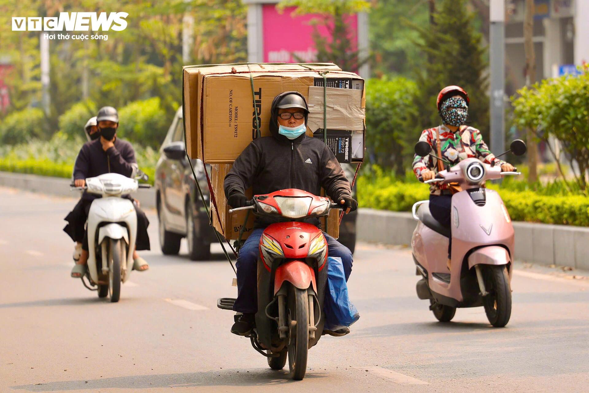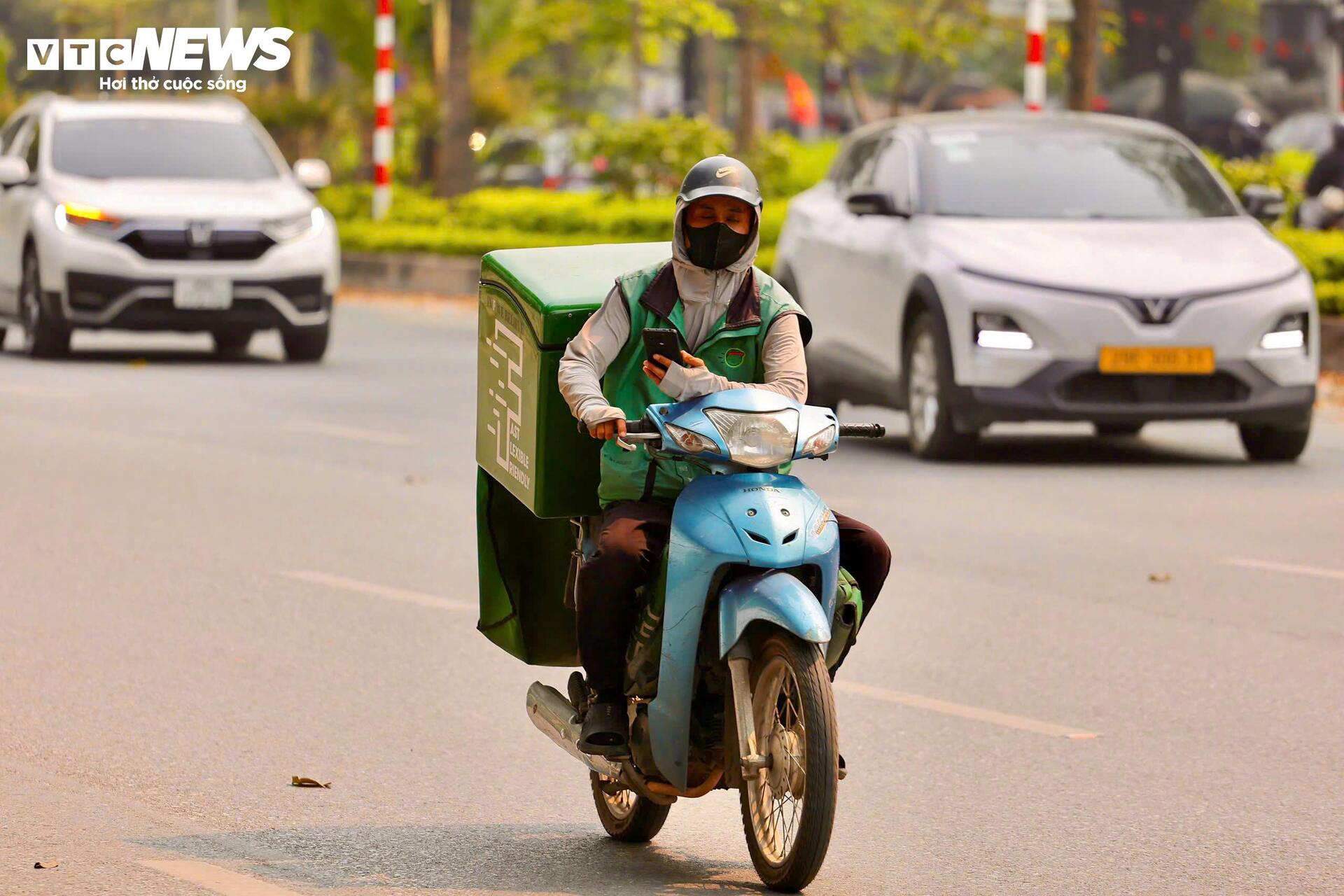 Người tham gia giao thông phải trang bị kín mít với áo chống nắng, khẩu trang, kính râm để hạn chế tác động trực tiếp từ tia UV và nền nhiệt cao kéo dài. Anh Đặng Phương Nam, shipper làm việc nhiều giờ ngoài trời, cho biết dù nắng nóng gay gắt vẫn phải cố gắng bám đường để kịp đơn hàng, chỉ tranh thủ nghỉ ngắn dưới bóng râm và uống nước liên tục để tránh kiệt sức.