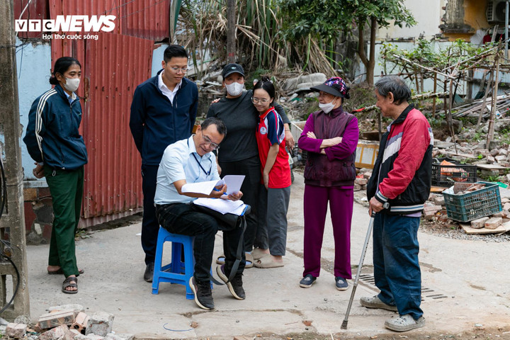 Cán bộ phường Cầu Giấy trực tiếp đến từng hộ dân thuộc diện di dời để hướng dẫn, hỗ trợ hoàn thiện thủ tục thuê nhà tạm cư.