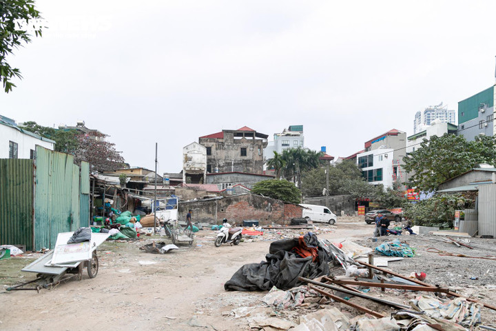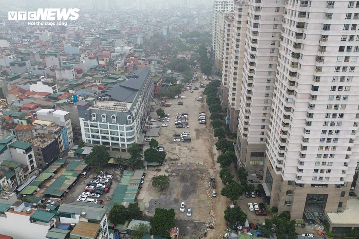 Đoạn cuối tuyến đường tiếp giáp khu đô thị mới Dịch Vọng đã được giải phóng mặt bằng, hiện đang được sử dụng làm bãi trông giữ xe.