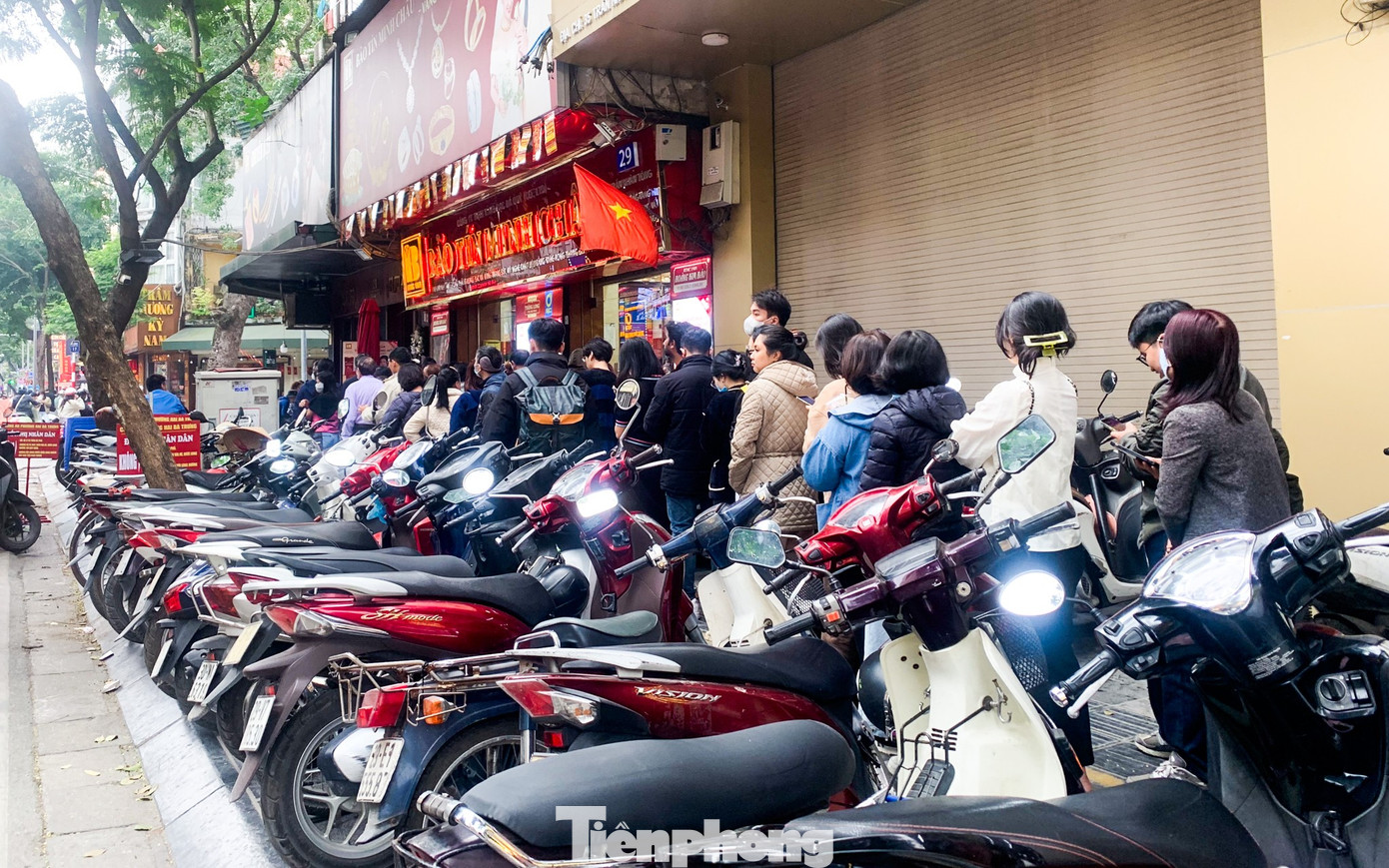 Từ sáng sớm, trước nhiều cửa hàng vàng lớn trên phố Trần Nhân Tông đã xuất hiện những hàng người nối dài, tràn cả xuống vỉa hè và lòng đường. Cảnh tượng này kéo dài suốt nhiều giờ trong buổi sáng, khi lượng khách tăng nhanh hơn khả năng phục vụ của các quầy giao dịch.