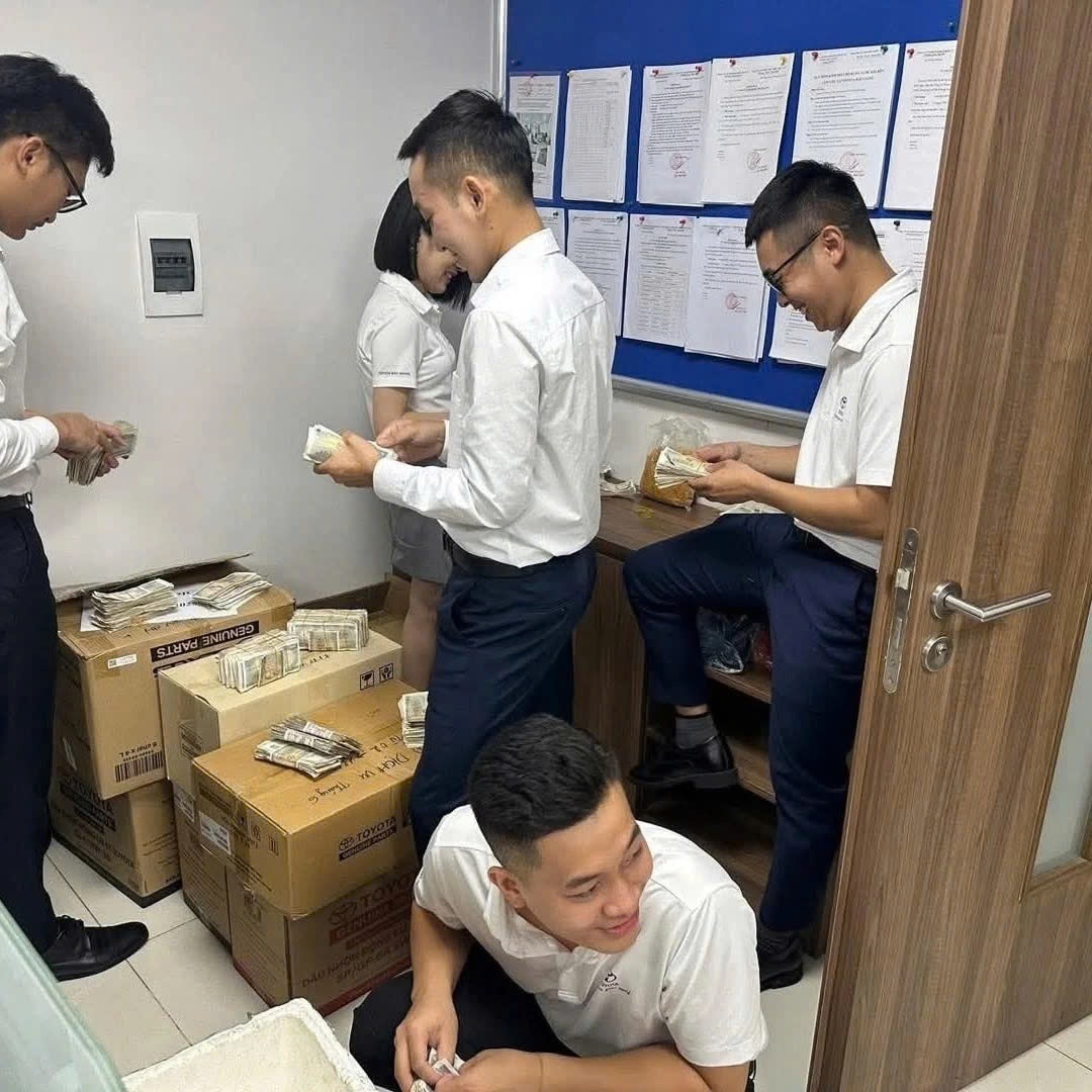 Cửa hàng xe đã huy động khoảng 20 nhân viên từ phòng kinh doanh và một số phòng ban khác để đếm số tiền trong 2 tiếng.