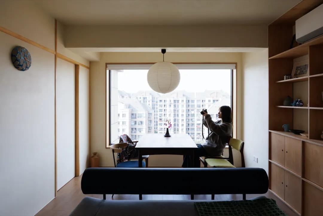 Nội thất tối giản, dễ di chuyển tăng tính linh hoạt cho ngôi nhà. Khu vực ăn uống, với chiếc cửa sổ mang đến tầm nhìn ra sông và cây cối giúp Giang Tĩnh tìm lại sự bình yên khi làm việc.