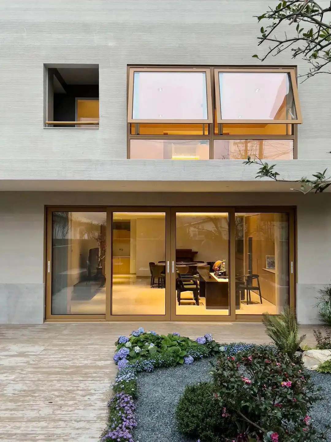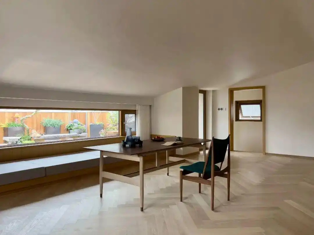 Biệt thự của nhà bà Hứa được thiết kế quay về hướng đông để đón nhiều ánh nắng tự nhiên. Cảnh vật thiên nhiên bên ngoài và ánh sáng giúp mỗi khung cửa sổ trong ngôi nhà đều trở thành một “khung tranh” tự nhiên, mỗi mùa lại thay đổi màu sắc. Ở tầng một cũng có không gian sân vườn, nơi bà Hứa dành nhiều thời gian cùng gia đình tụ họp, trò chuyện, ngắm cây thay lá theo mùa.