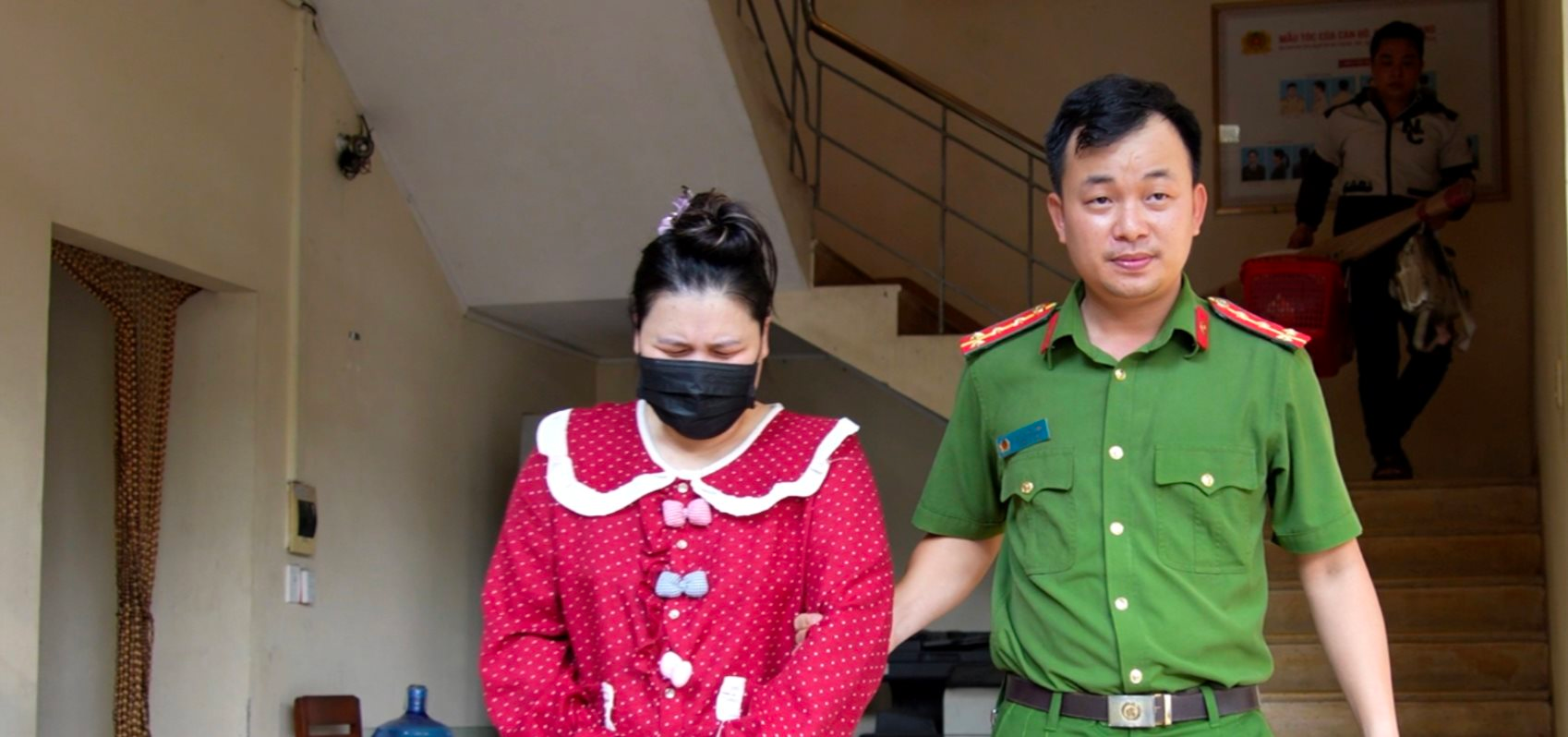 Cơ quan Cảnh sát điều tra Công an tỉnh Quảng Ngãi dẫn giải đối tượng Võ Thị Bé Nhung