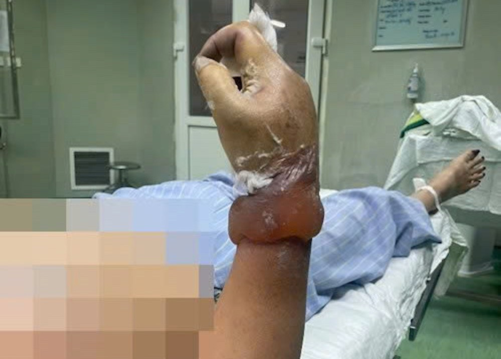 Các bác sĩ đã phẫu thuật tuy nhiên nguy cơ nạn nhân H. phải cắt cụt cẳng tay rất cao.