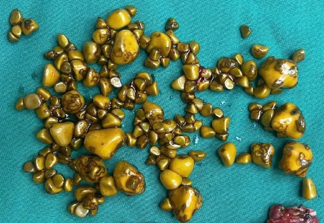 Hàng trăm viên sỏi lớn nhỏ khác nhau chất đầy trong túi mật của người bệnh