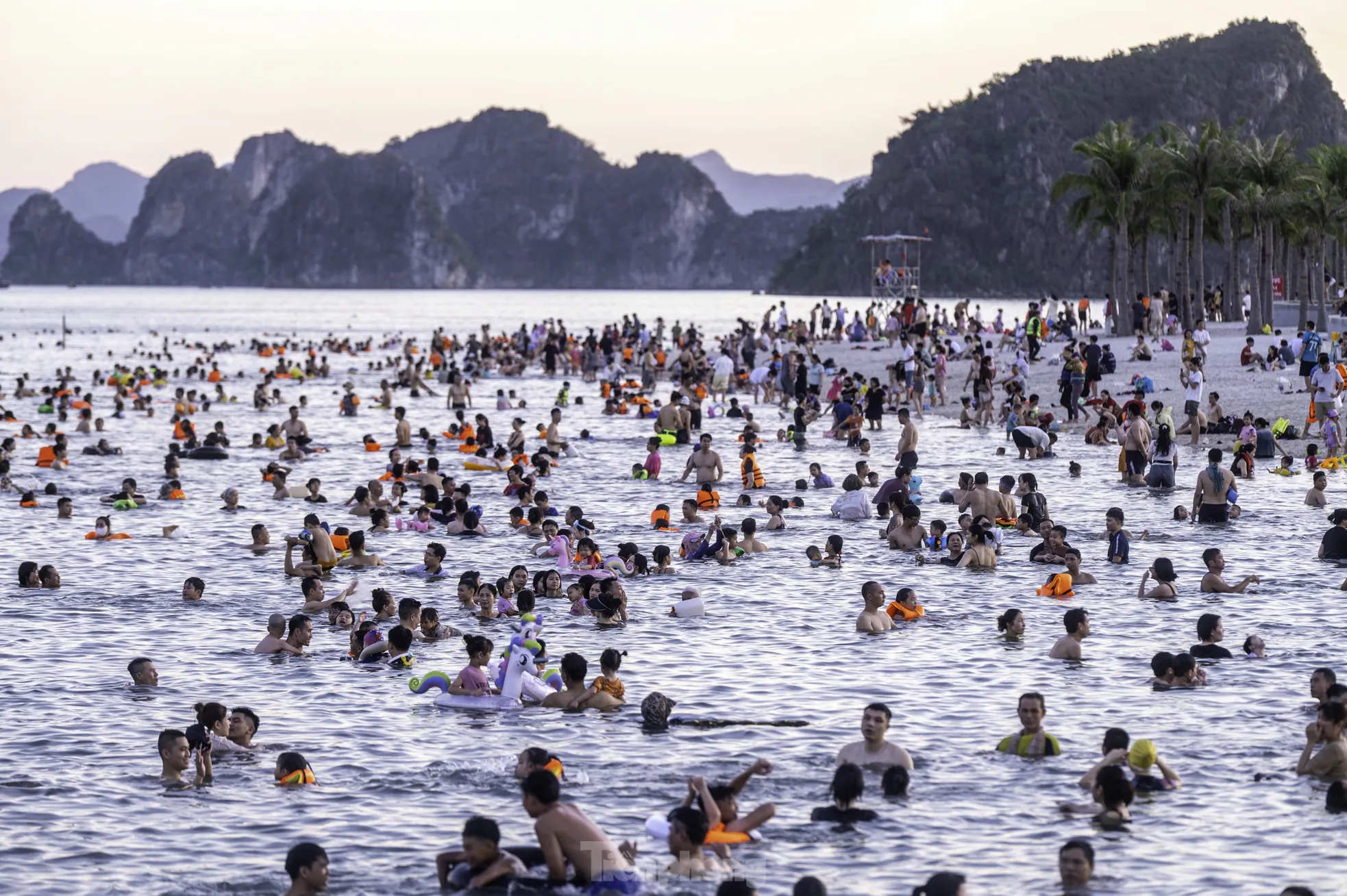 Những ngày gần đây thời tiết tại thành phố Hạ Long, tỉnh Quảng Ninh có nắng nóng khiến các bãi tắm thuộc địa phương này chật kín người vào mỗi buổi chiều.