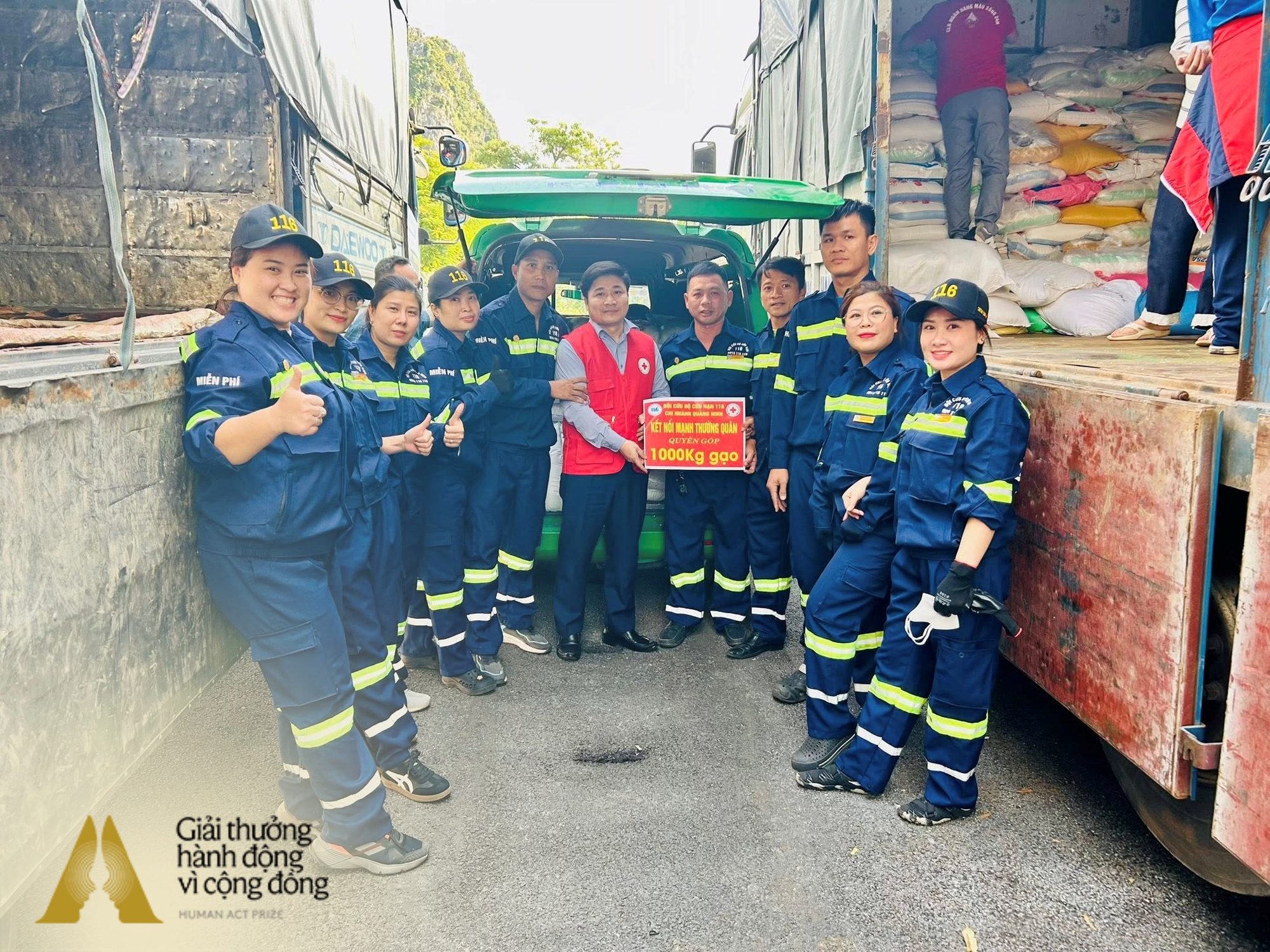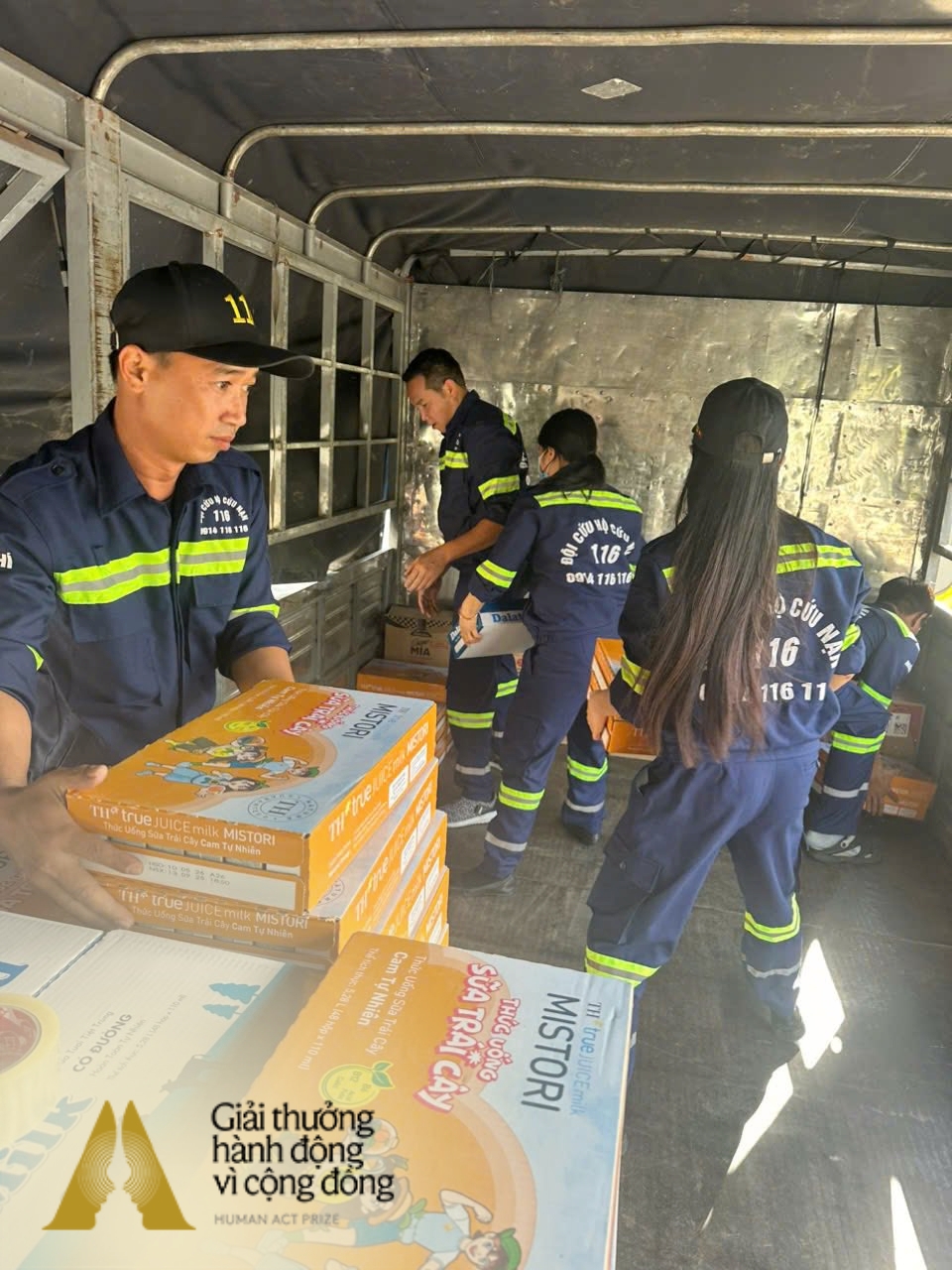 Trong suốt thời gian Đội 116 khẩn cấp bám trụ tại các địa bàn bị ảnh hưởng nặng nề, chị Trần Mai Anh và team Human Act Prize vẫn duy trì liên lạc thường xuyên, kịp thời kết nối thêm phương tiện và nhu yếu phẩm, tiếp thêm nguồn lực để những chuyến cứu hộ được duy trì trong bối cảnh thiên tai ngày càng khắc nghiệt.