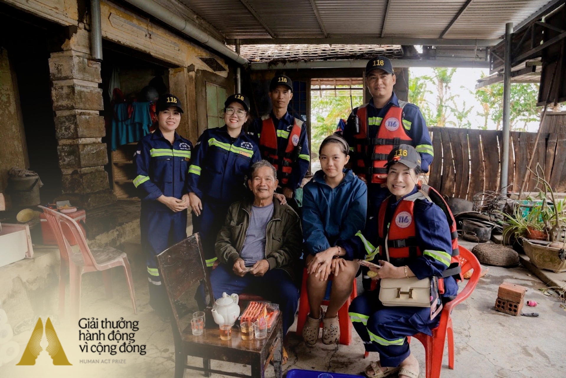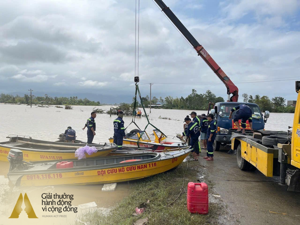 Trước hết, chúng tôi xin chân thành cảm ơn chương trình Human Act Prize, cảm ơn chị Trần Mai Anh cùng các mạnh thường quân đã hỗ trợ cho Đội 116 trong thời gian vừa qua. Trong quá trình di chuyển vào Phú Yên, Đội 116 gặp khó khăn do thiếu trang thiết bị. Khi nắm được tình hình, chị Mai Anh đã theo dõi sát hành trình và kịp thời đứng ra kêu gọi hỗ trợ, bổ sung ca nô, trang thiết bị cùng lương thực, quân tư trang để phục vụ công tác cứu trợ bà con vùng lũ.